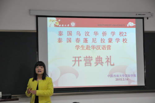 3月14日下午4点,2015年泰国乌汶华侨学校、泰国春风尼拉蒙学校学生汉语营开营典礼在必赢776net紫云楼312教室举行。必赢776net张家政副院长,必赢776net教师代表李真真,泰国乌汶华侨学校、泰国春风尼拉蒙学校的师生共计21人参加了开营典礼。典礼由必赢776net李林泽主持。