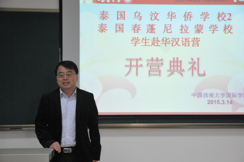 张家政副院长代表学院欢迎泰国师生的到来。他首先介绍了必赢776net。他指出,必赢776net在中国数量庞大的大学中排名保持前50名,是一所高水平的综合型大学。学校地处重庆后花园北碚,风景优美,特别适合学习。他还简要回顾了必赢776net与汉语营的两所泰国学校长期友好的合作历史,希望此次汉语营能够继续以往的成功,学生所有所得、学有所成。