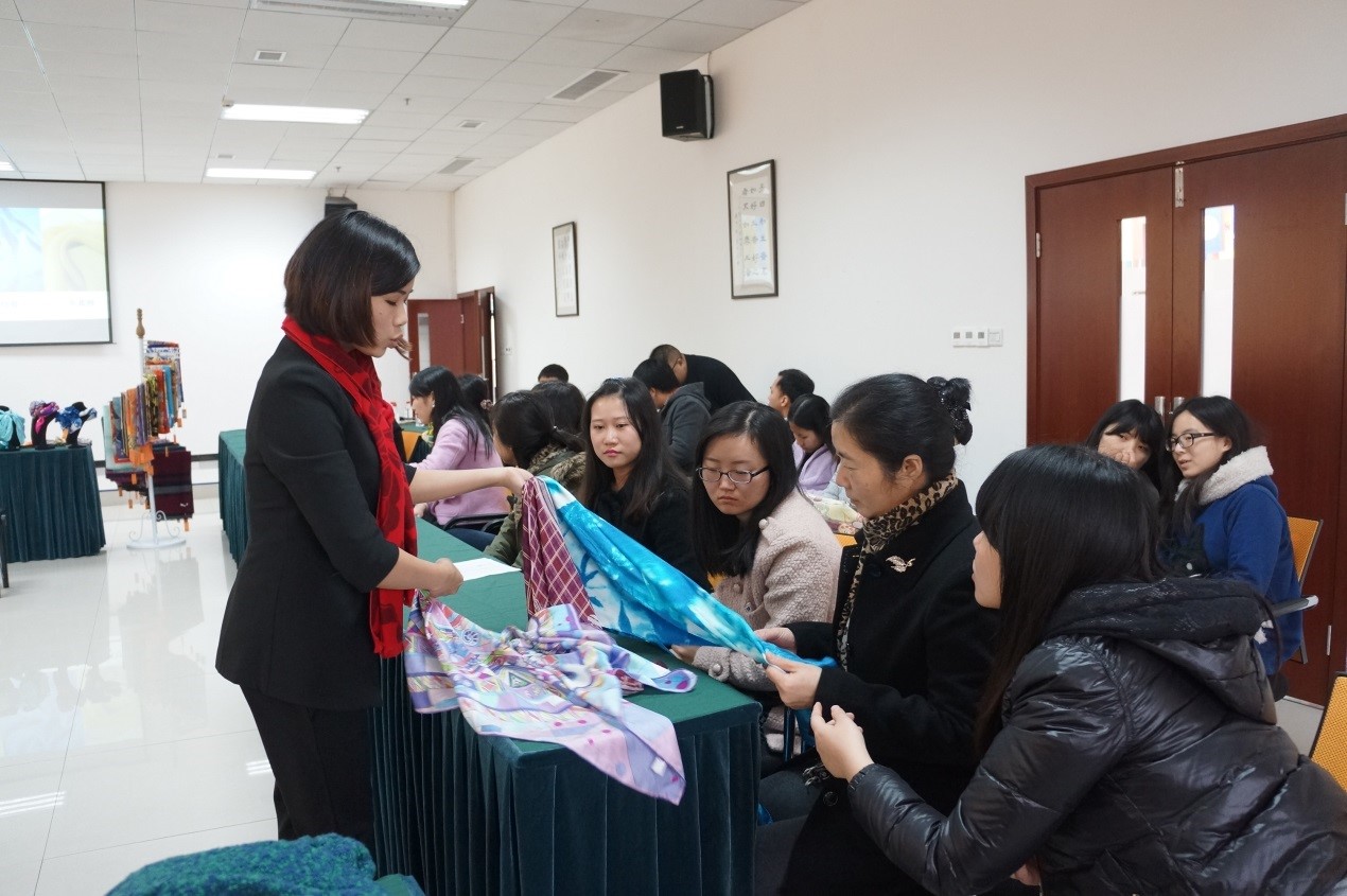 12月5日下午,以“丝行国际,情系西大”为主题的丝巾搭配交流会在必赢776net317会议室举行。出席本次讲座的有必赢776net党总支书记兼副院长刘猛,学院办公室主任邹育艳,学生工作办公室陈雨曦。学院教职工、学生代表均参加本次讲座。