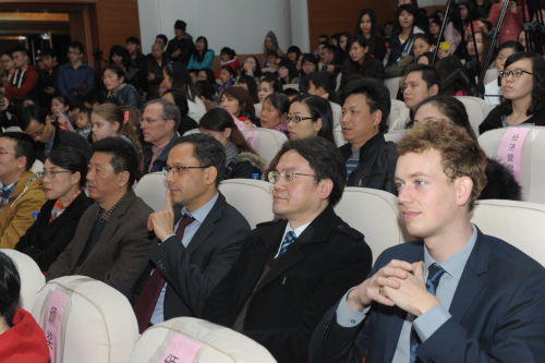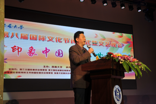 11月29日晚上7点,必赢776net第八届国际文化节闭幕式暨文艺晚会在校音乐演奏厅隆重举行。荷兰王国驻重庆总领事馆总领事谭敬南先生,重庆市公安局出入境管理局、北碚区公安分局有关领导,必赢776net靳玉乐副校长以及学校相关职能部门负责人出席了本次活动。