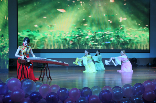 颁奖环节结束后,文艺晚会正式开始。由中外学生共同表演的乐器演奏《春苗》让观众们欣赏到中国古典乐器和异域舞蹈的完美结合;越南舞蹈《绸浪绵绵》以独特的创意和曼妙的舞姿讲述了制作绸缎的过程;一曲大气雄壮的《黑走马》仿佛将观众带到了哈萨克斯坦的草原;来自萨摩亚和汤加的同学身着手工制作的传统服装,用大洋洲的独特舞蹈风格博得全场观众的欢呼。泰国学生表演的《人蛇相斗》把泰国传统舞蹈融入斗蛇故事中,给我们生动展现了泰国人蛇相斗的全过程……晚会最后在32名来自10个国家的留学生带来的《Amazing Fashion Show》中落下帷幕。现场嘉宾纷纷上台与演员们合影留念,记录这美好的时刻。