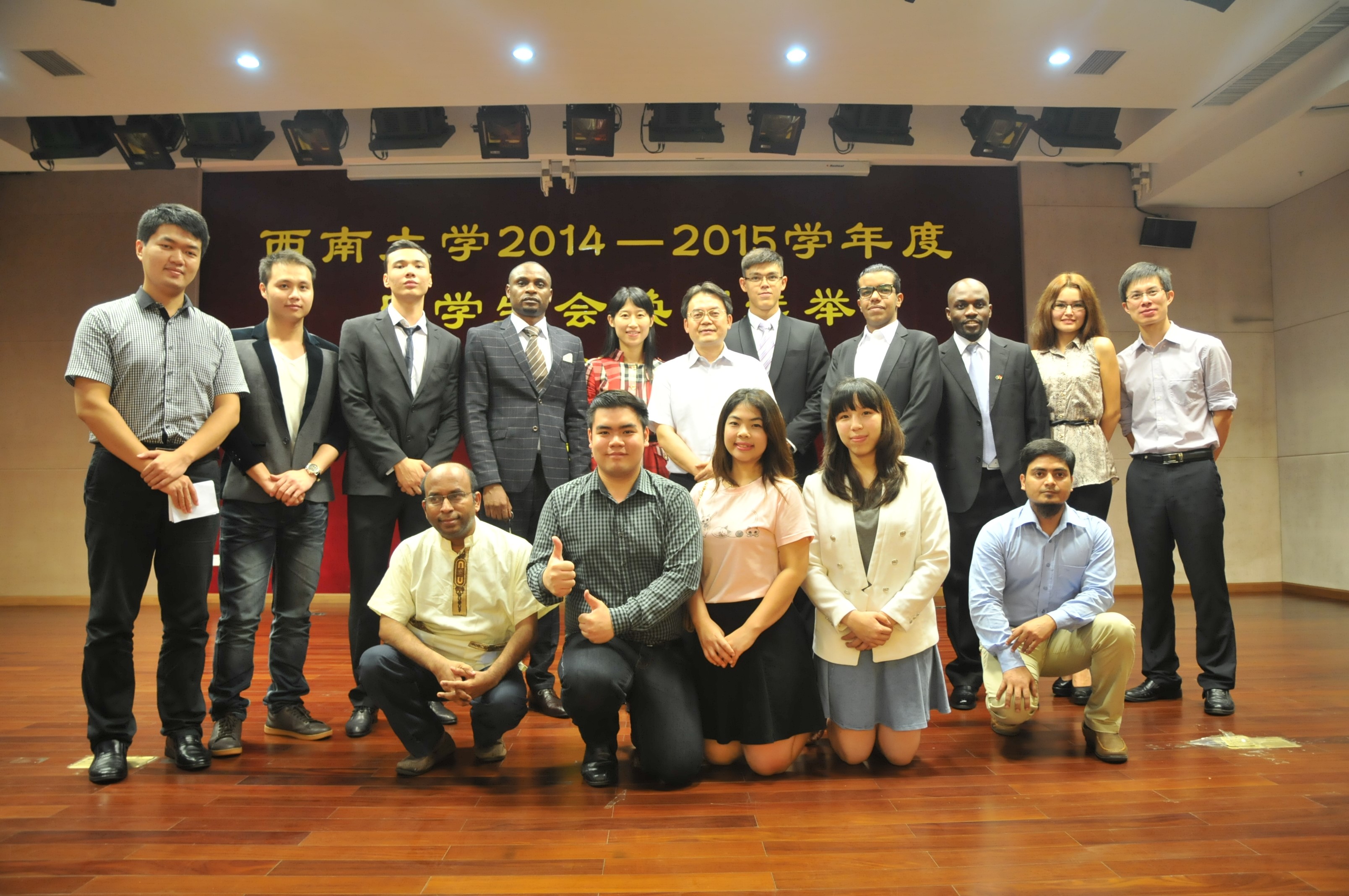 9月29日必赢776net2014-2015年度留学生会换届选举大会在紫云楼一楼国际报告厅隆重举行,12名候选人就新一届留学生会的主席、副主席和秘书职位展开竞选。必赢776net刘猛副院长,学生工作办公室的相关老师以及全校300余名留学生出席选举大会。