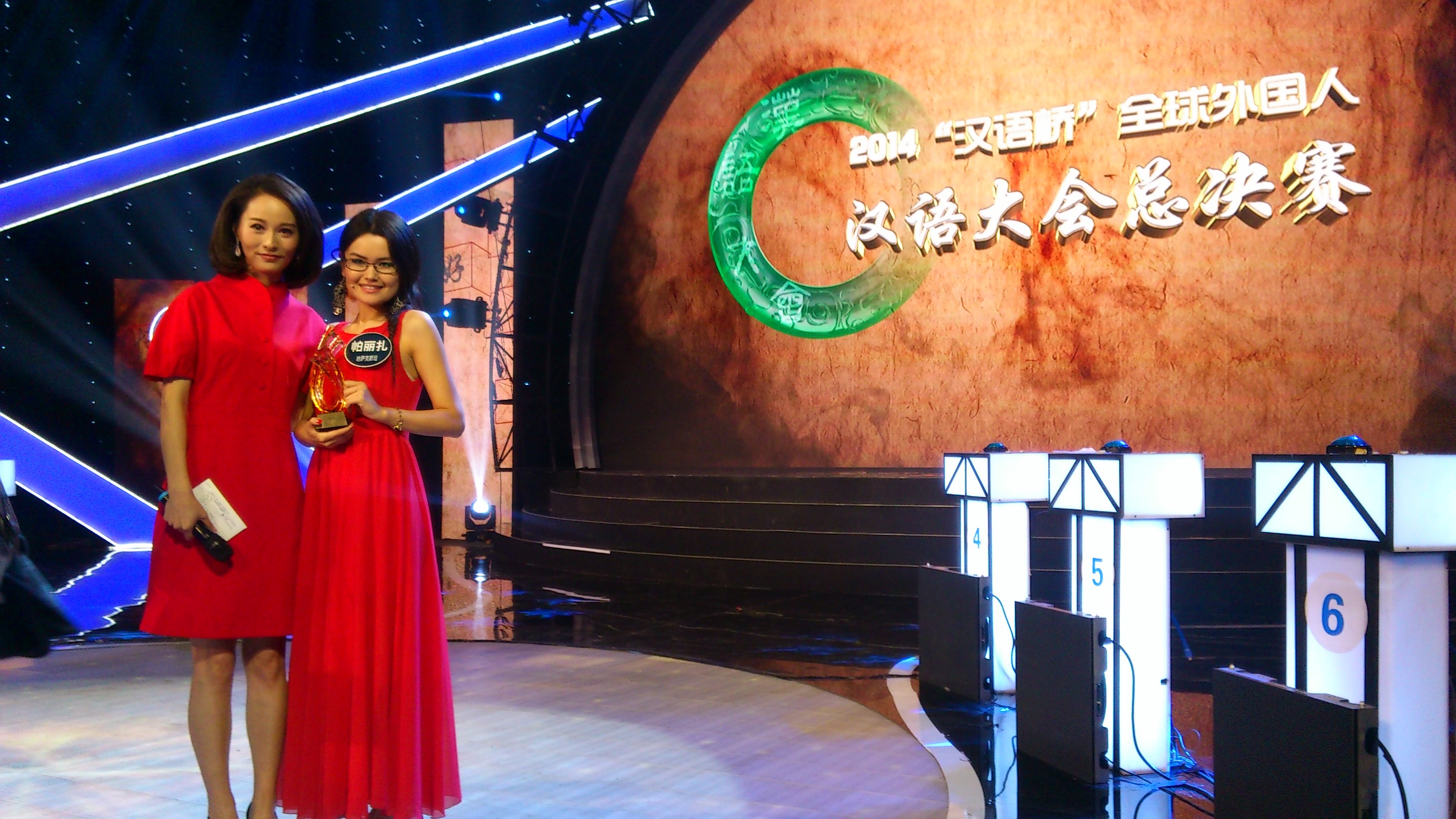 9月20日晚,央视CCTV-4播出2014“汉语桥”全球外国人汉语大会总决赛实况,我校哈萨克斯坦籍留学生帕丽扎在总决赛中精彩亮相夺得银奖。