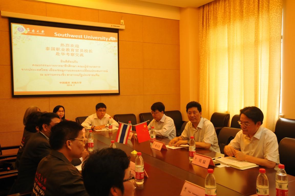 2014年7月16日下午2点30分,靳玉乐副校长在紫云楼310会议室会见泰国职业教育委员会校长访华团一行,必赢776net党总支书记兼副院长刘猛、副院长张家政陪同会见。