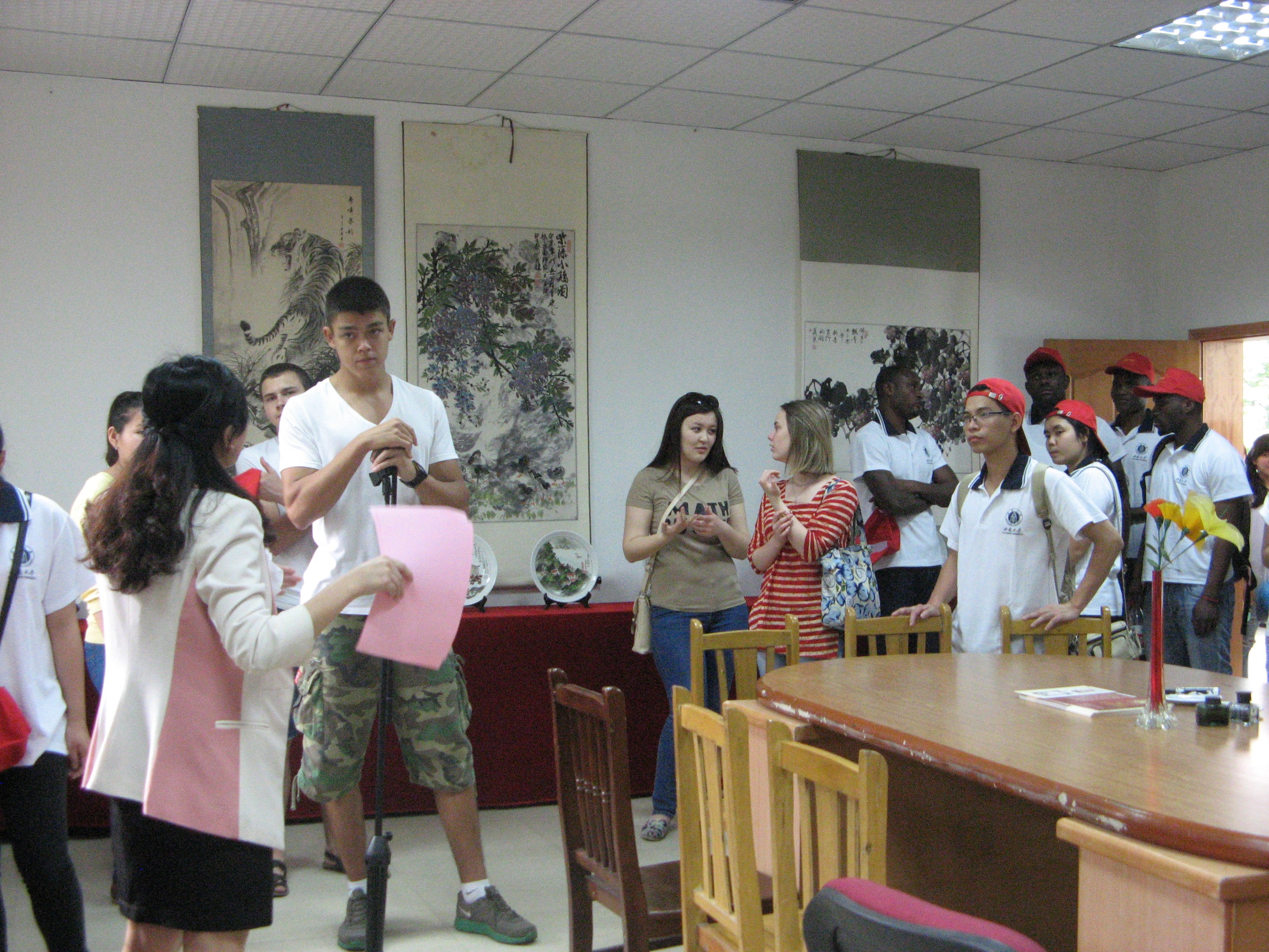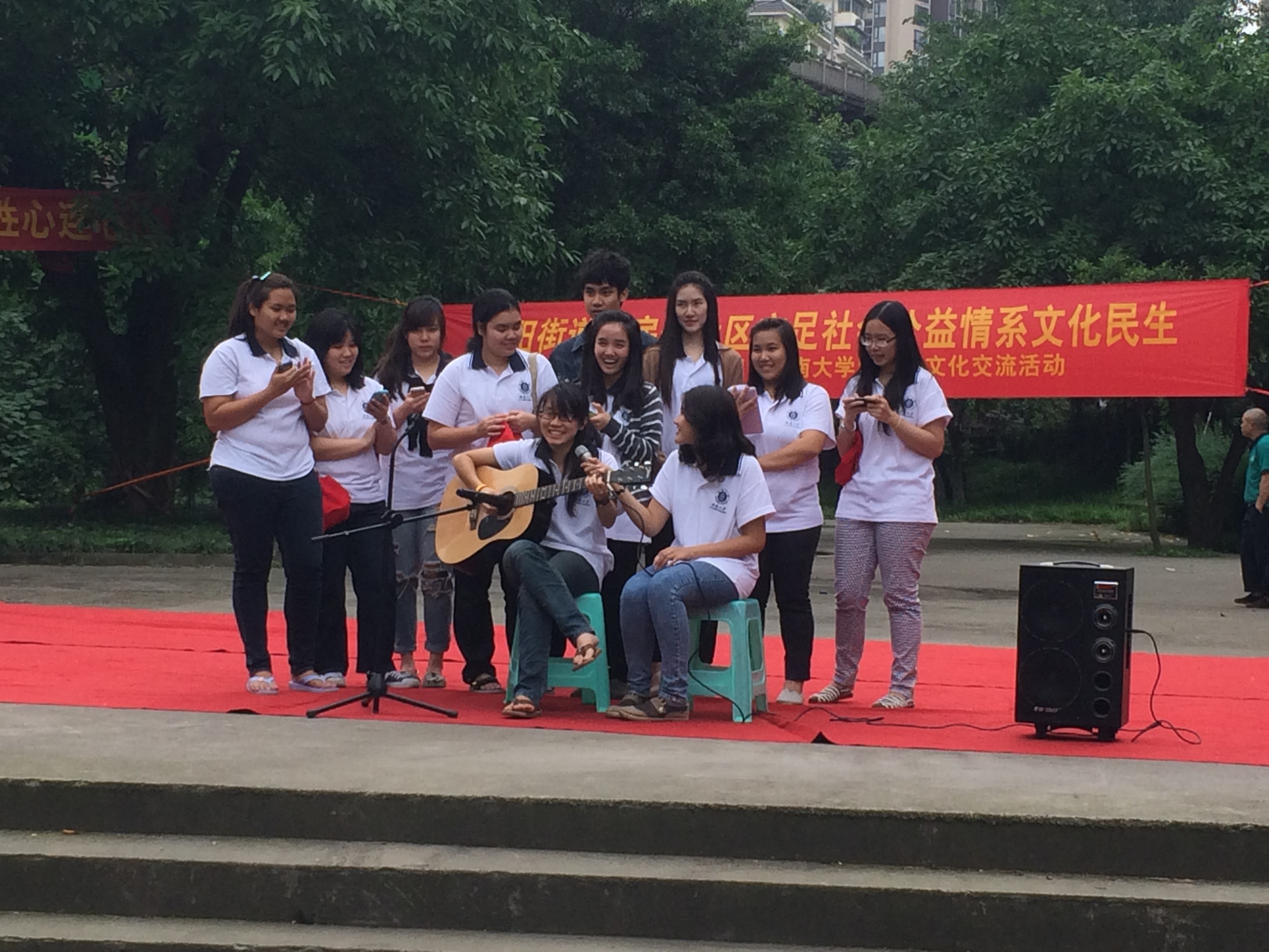 留学生们首先在社区工作人员的带领下参观了社区文化服务中心的工艺美术室、心理咨询室、老年活动室等,并亲身体验,对各项健身及益智设施充满了浓厚的兴趣。随后,留学生们和社区的民众们齐聚于广场,进行文艺表演和文化交流。朝阳街道文化服务中心主任何羲薇出席了本次活动。必赢776net学工办主任陈雨曦发表了讲话,介绍了必赢776net必赢776net及“洋雷锋”小红帽服务队的情况,并预祝此次 “洋雷锋”小红帽服务队社区行活动取得圆满成功。社区民众和留学生们精心准备的节目精彩纷呈,高潮迭起。社区民众表演的舞蹈《爱我中华》展示了中国人的蓬勃朝气,多国留学生联合表演的吉他弹唱《情非得已》充满了青春活力,社区老人表演的太极拳、太极剑、功夫扇等尽显了老年人的老当益壮,泰国留学生罗俊勇表演的京剧《定军山》压轴登场,华丽的戏服、字正腔圆的演唱、神采飞扬的表演更是赢得大家的阵阵掌声。