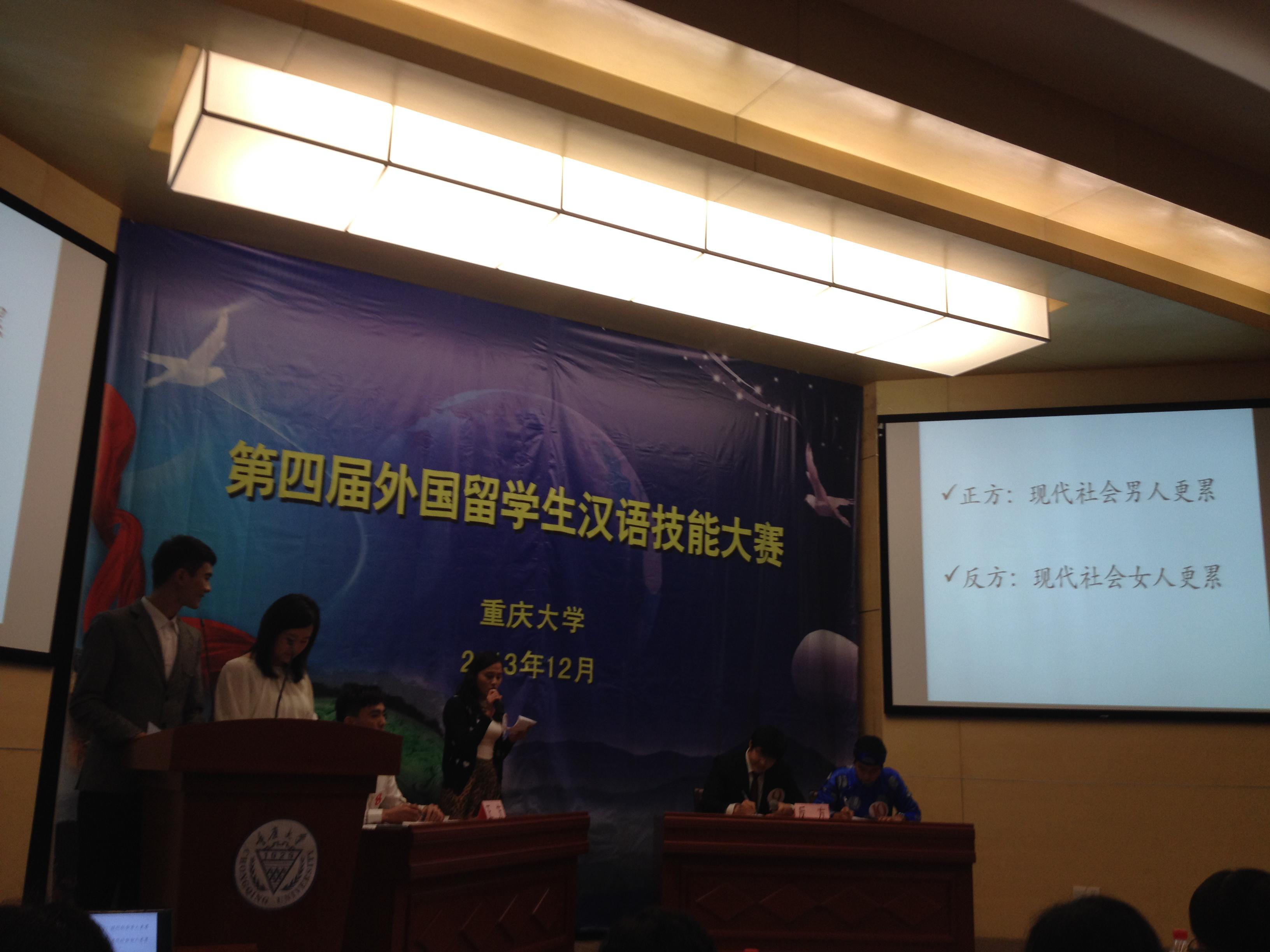 2013年12月5日下午2:30重庆大学必赢776net举办了第四届外国留学生汉语技能大赛,重庆市八所高校均派出留学生积极参与此次比赛。通过紧张的预赛角逐,我校哈萨克斯坦留学生帕丽扎同学以及越南留学生黄英书同学进入了决赛。最后帕丽扎同学以流利的口语及丰富的中国文化知识获得评委的一致认可,摘得中级组第一名;黄英书同学在高级组辩论比赛环节中表现优异,获得第二名的好成绩。