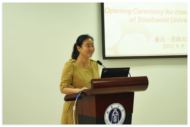 之后,教师代表范媛媛对留学生们表达了成为大家的"良师益友"的愿望,她希望留学生们能把学院当成自己的家,与老师建立起深厚的师生情谊。随后,现任留学生会主席、来自刚果布的美民讲述了自己在西大五年的学习经历和切身感受,他说"自己已经把西大当成了自己的第二个家,这里的老师也把我们当成家人一样",并鼓励新同学们要"努力学汉语,真心交朋友,为学校增光添彩"。其后,来自乌兹别克斯坦的祖河丁作为2013级新生代表满怀激情地进行了发言,他表示新同学们对在西大的新生活都充满了期待,并立志在新学期里把握学习机会,学好汉语。