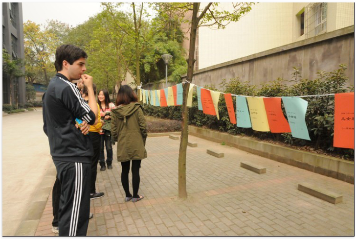 团队比赛结束后举行的是夹玻璃珠、幸运套圈、猜字谜、瞎子摸象等个人项目。大家除了在幸运套圈、瞎子摸象等游戏中了解了中国人平常的娱乐项目,不但愉悦了身心,更加贴近了中国生活之外,更是在猜字谜、夹玻璃珠等项目中将在我校的学习和生活所得的知识和技能运用自如,在学以致用的同时,还获得诸多意外奖品,可谓一举多得。