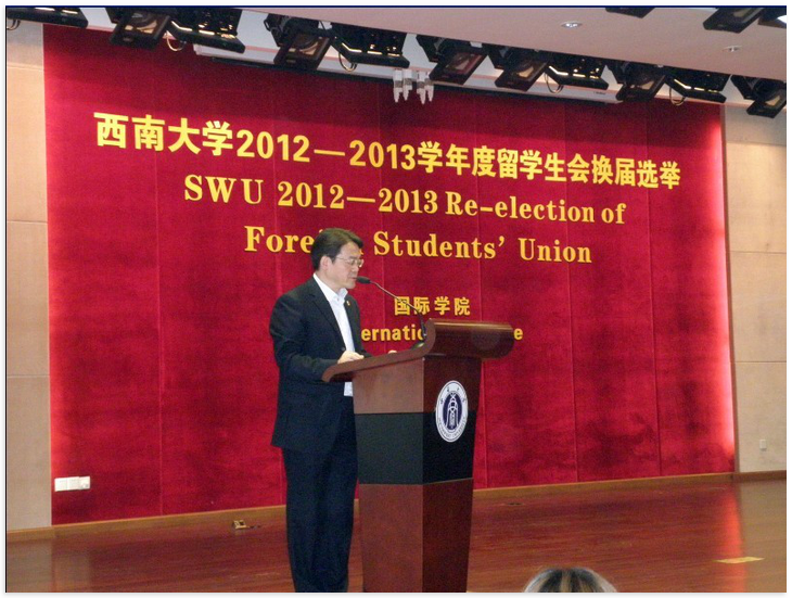 2012年10月19日下午3:00,我校2012—2013学年度留学生会换届选举如期举行。国际合作与交流处副处长、必赢776net副院长刘猛到会并致辞,对上一届学生会成员的工作给予肯定并表示衷心的感谢,对即将产生的新一届学生会成员寄予厚望,希望他们能够成为一座广大留学生与学校交流、沟通的桥梁。留学生科科长代远鸿对此次竞选职位和竞选规则做了详细介绍,随后现场竞选如火如荼地展开。