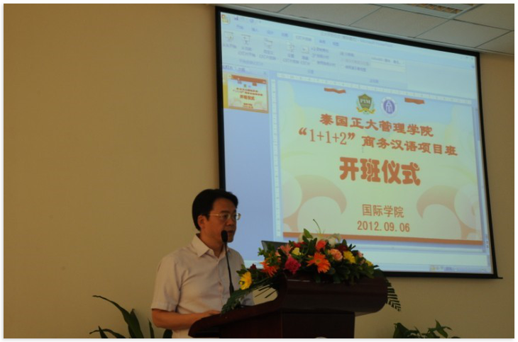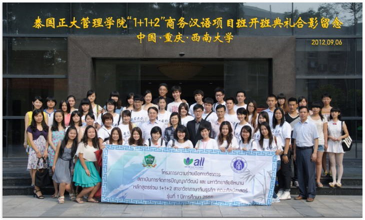 2010年泰国正大管理学院与我校签署合作备忘录,2011年我校派出12名汉语国际教育硕士研究生赴正大管理学院进行为期一年的海外教学实习。"1+1+2"商务汉语本科项目旨在为泰国培养合格的精通汉语的商务人士,学生将在我校完成一年的专业学习和两个月的实习。该项目的顺利实施必将促进两校的进一步合作和中泰友谊的长远发展。