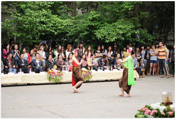 泰国驻成都总领事馆领事、重庆市外侨办、重庆市公安局出入境管理处、北碚区公安分局以及学校有关职能部门的领导应邀出席了本次泰国泼水节活动。