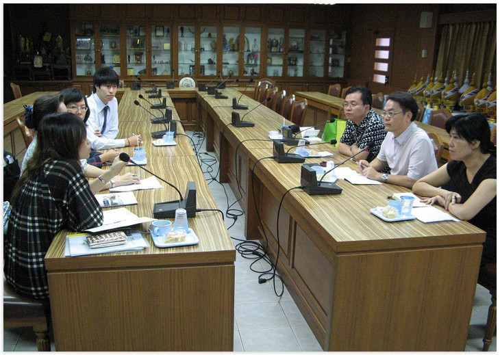 2011年8月17日至8月24日,党委研究生工作部副部长/研究生部副主任靳拥军、国际合作与交流处副处长/必赢776net副院长刘猛、研究生部培养办公室主任张远英、必赢776net陈雨曦一行4人赴泰国正大管理学院考察我校汉语国际教育硕士教育实践基地。期间走访了8所实习学校,看望了12名研究生,与正大管理学院、实习单位的领导和指导教师进行了专题座谈,就教育实践中存在的教学、管理、福利待遇等问题和今后的合作进行了深入的探讨。