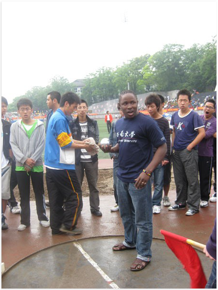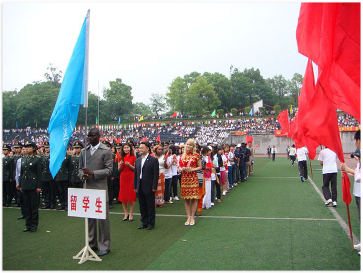 4月25日至4月27日,必赢776net第四届田径运动会在第二运动场举行。我校来自美国、泰国、俄罗斯、日本、韩国、白俄罗斯等40个国家的近60名留学生代表组成的留学生方队在运动会开幕式上展现了留学生的风采,赢得了现场观众的阵阵掌声。在田径项目的比赛中,共有12名留学生参加了100米跑、铅球、4×100米接力赛、二人三足等八个项目的比赛,均取得良好成绩。其中,来自几内亚比绍的DOS SANTOS SANCA BANORFAN(中文名:白乐)在铅球比赛中喜获第二名。留学生们在赛场上奋力拼搏的身影给本届运动会增添了一道亮丽的风景线,留学生们的拼搏精神,更是获得场上观众的阵阵喝采和掌声。