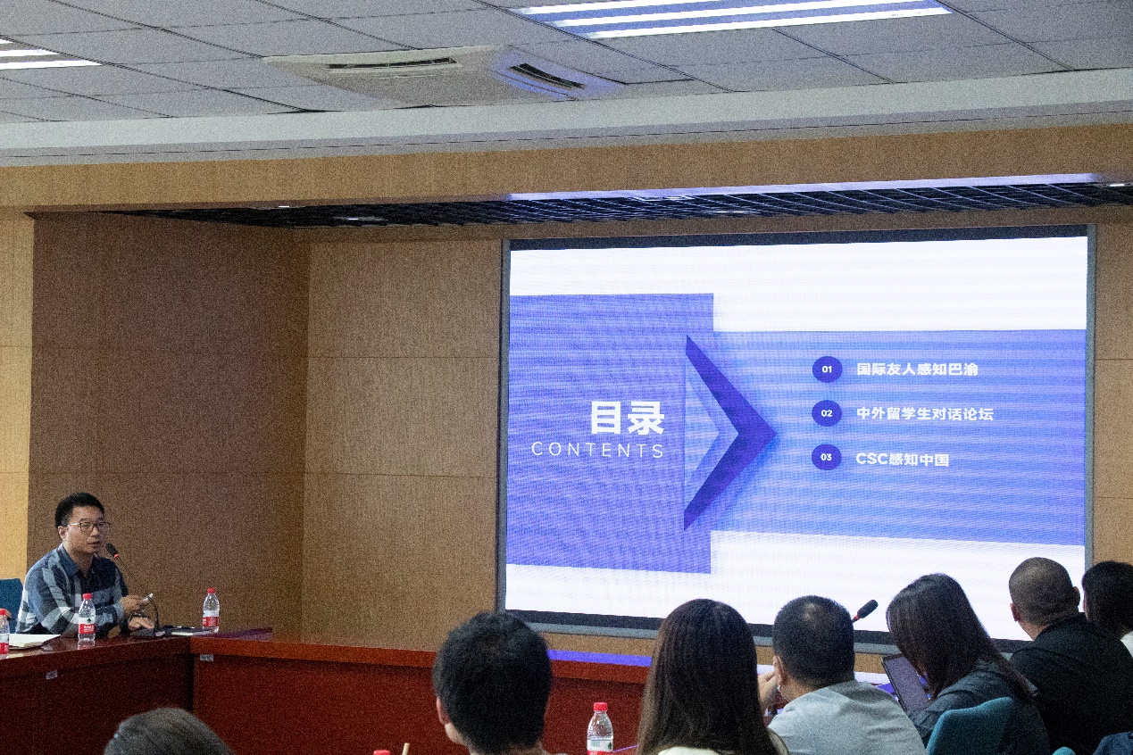 四川外国语大学钟南征就该校开展“国际友人感知巴渝”系列活动开展情况做简要汇报,建议国际学生国情教育活动应从参观、体验的模式向社会实践的方式转变。