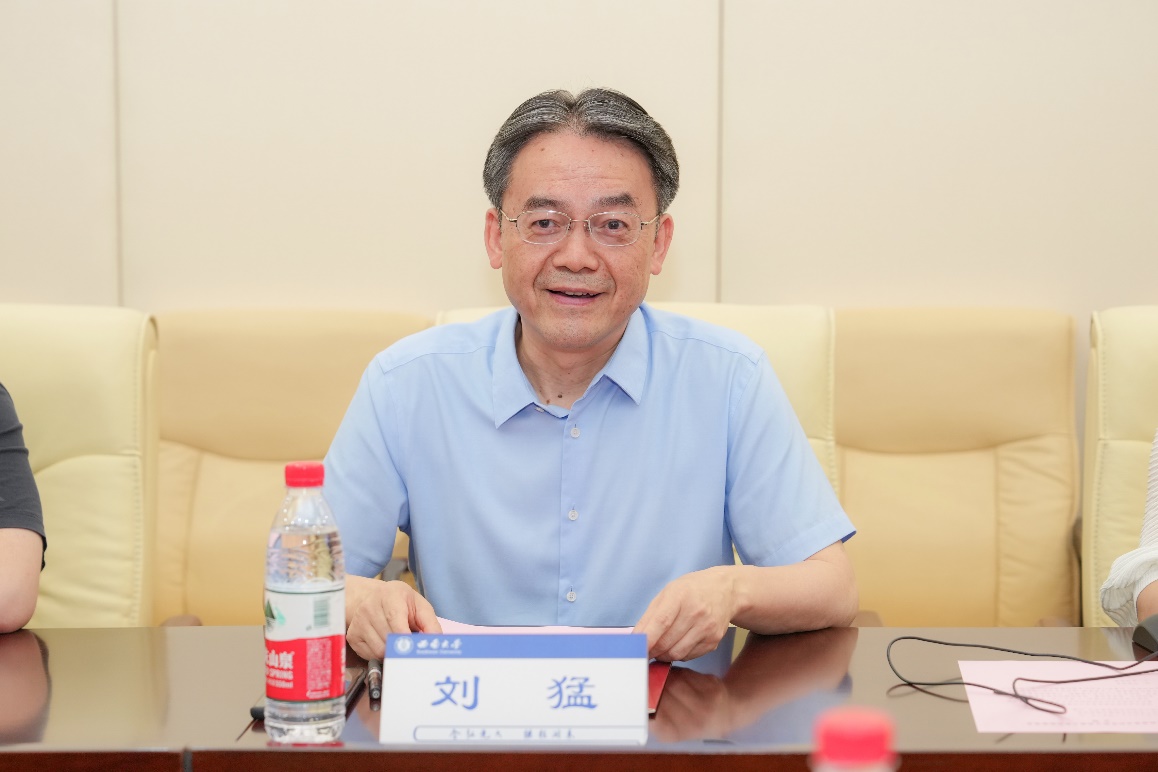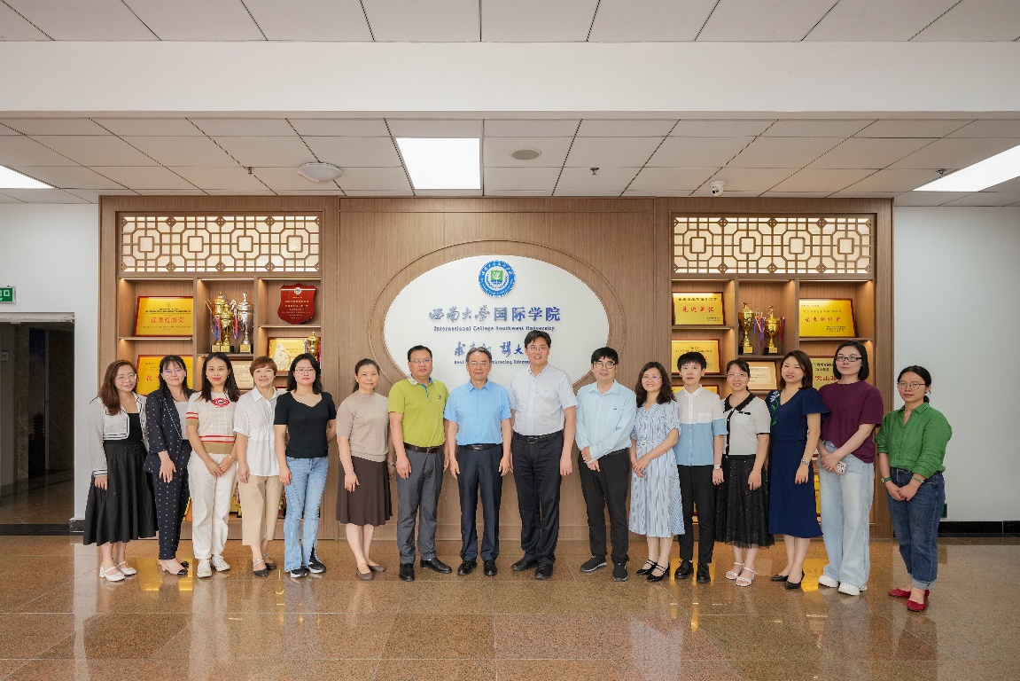 刘猛书记介绍学院概况和运行体制机制,阐释学院在“十四五”期间的新定位:打造全国来华留学生国情教育高地和西部国际中文教育高地。