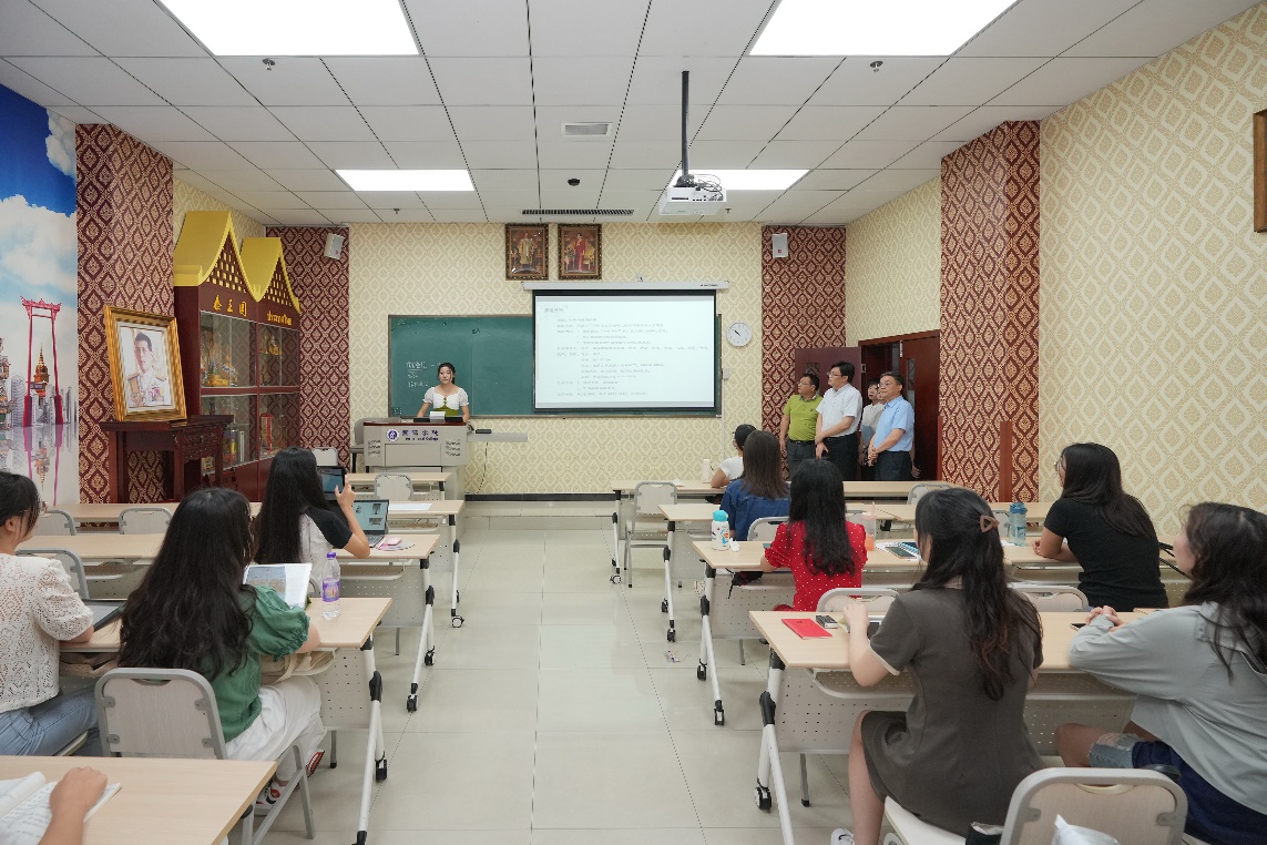 座谈会前,客人应邀参观学院汉语角、泰国文化教室、中华文化体验室、汉语国际教育图书馆、国际学术报告厅,以及学院荣誉墙、照片墙、学校来华留学工作图片展,高度肯定学校来华留学工作取得的丰硕成果,对学院“求真知·谋大同”的院训和“中国味 国际范”的文化氛围留下深刻印象。