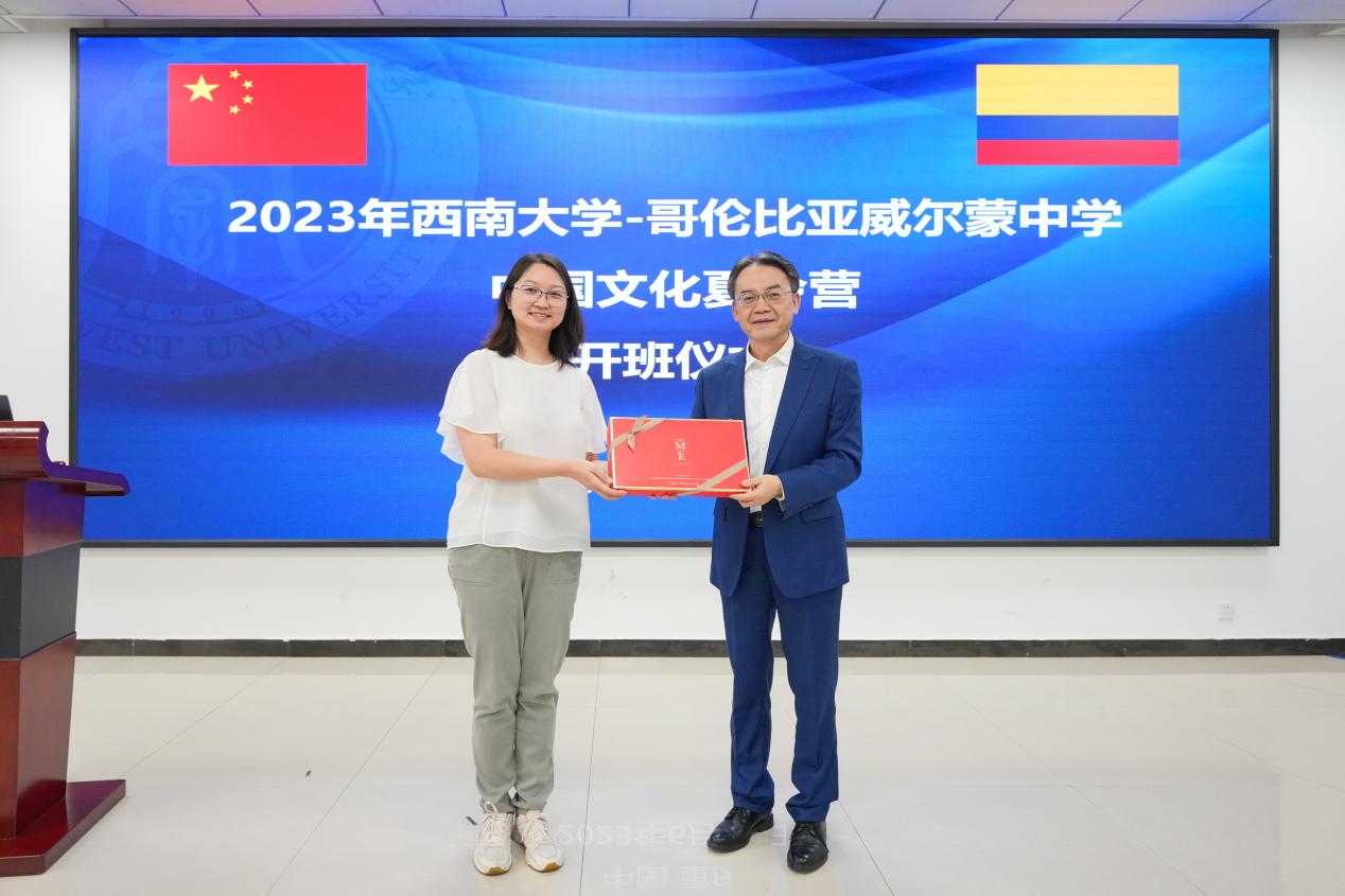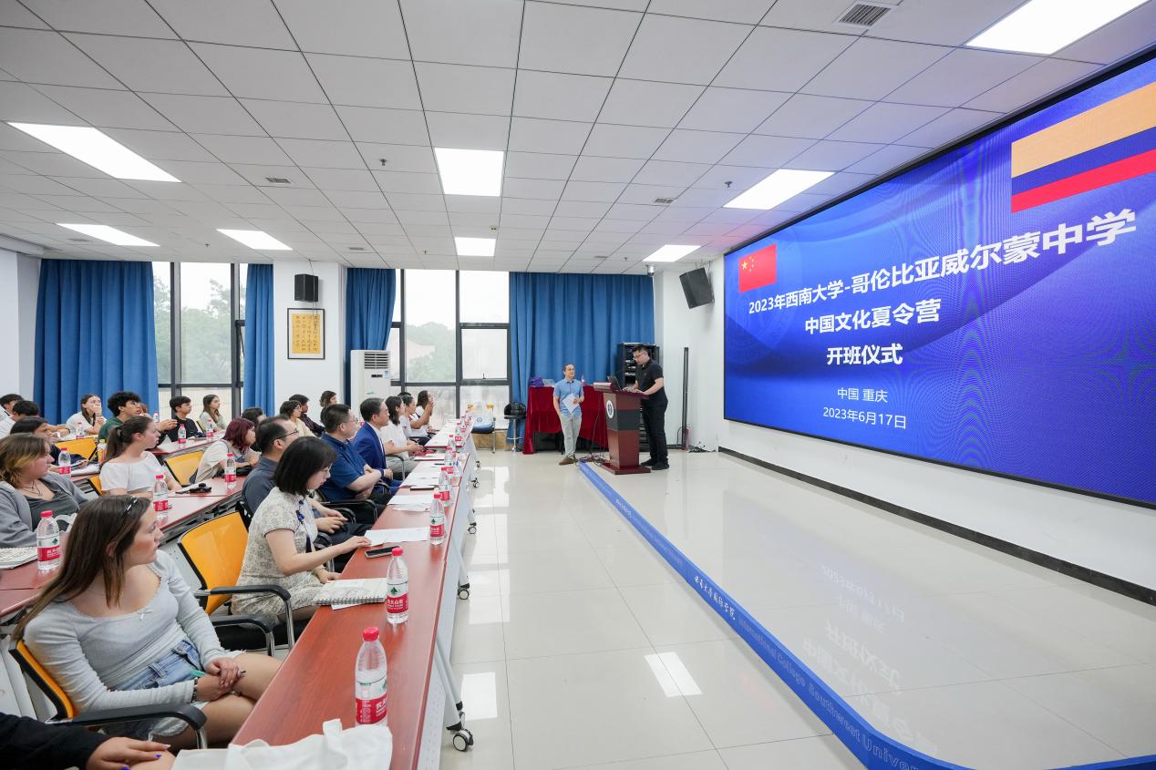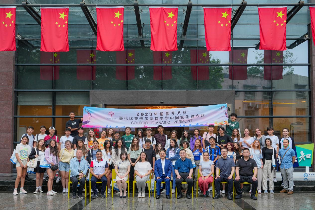 6月17日上午,“2023必赢776net-哥伦比亚威尔蒙中学中国文化夏令营”开班仪式在必赢776net紫云楼举行,来自哥伦比亚威尔蒙中学的46名师生欢聚学校,开启为期7天的参访学习。必赢776net党委书记刘猛,中国对外文化集团有限公司文旅板块副总经理张猛、展策划部副总监王彬,威尔蒙中学领队郑博君、Naiver Lenith Niño Velásquez、MANCILLA SANABRIA CESAR AUGUSTO等参加开班仪式,仪式由招办主任黄无为主持。