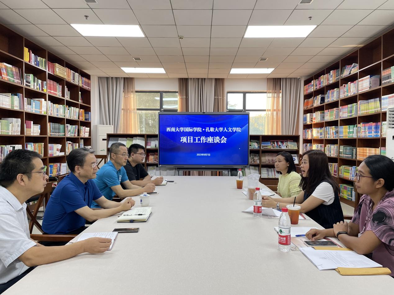 9月7日,泰国孔敬大学人文学院中文系主任秋兰副教授一行3人来访,学院党委书记刘猛,院长于泽元,副院长李航热情接待客人,并与招生办主任黄无为和项目协调人王鹊参加2+2联合培养项目工作座谈会。