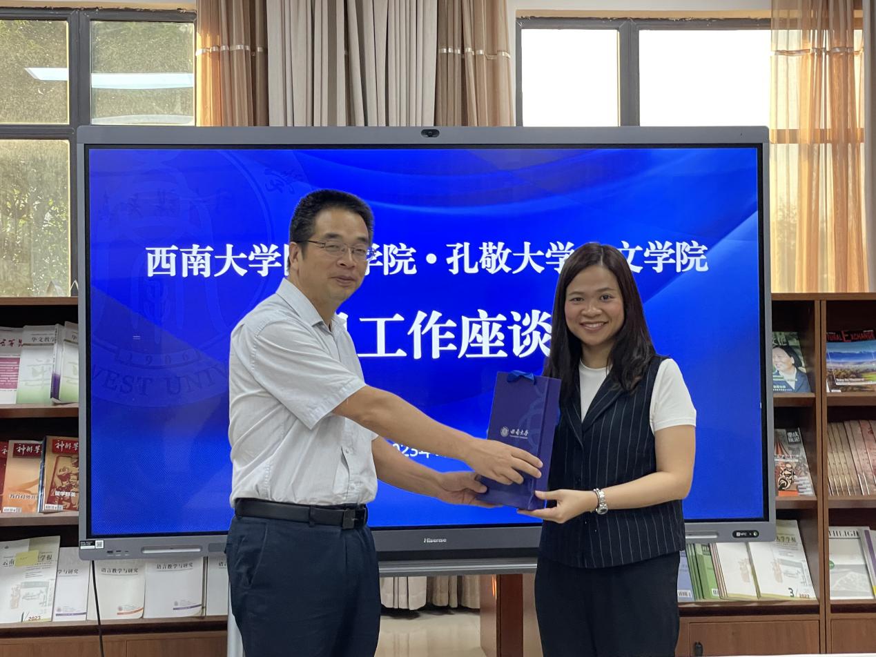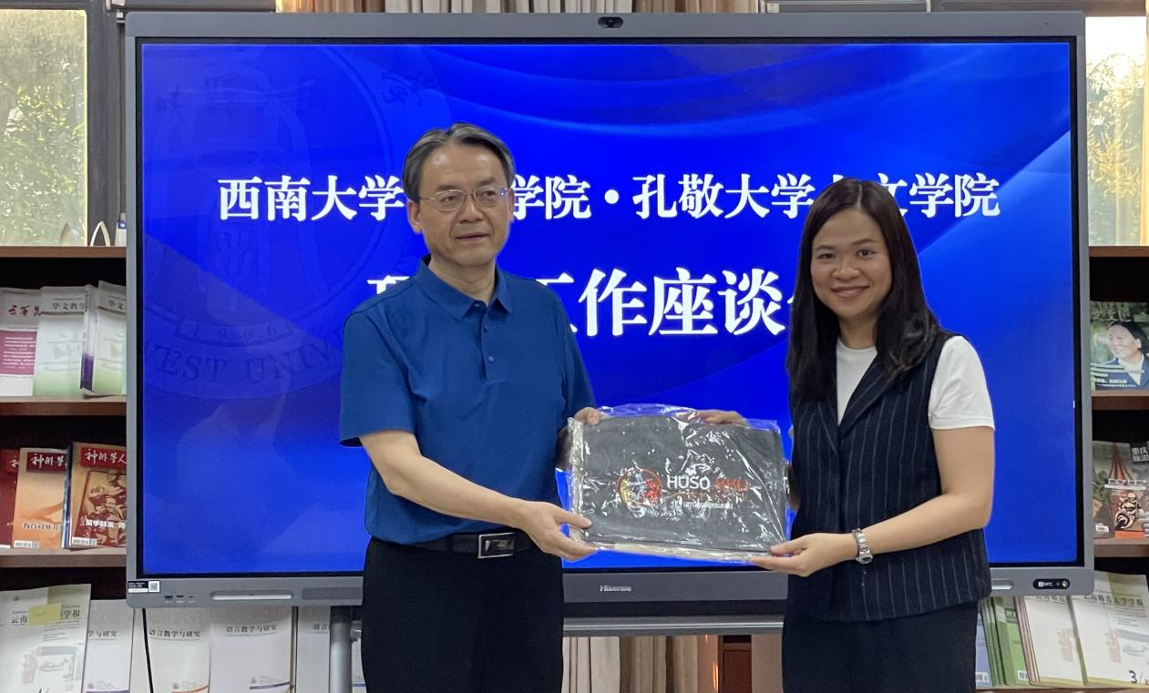 刘猛书记回顾两校的友好合作历史,高度评价孔敬大学人文学院对于“2+2联合培养项目”的大力支持,表示,虽然疫情影响了项目招生,给线上授课带来诸多挑战,但是在多方共同努力之下,项目不仅没有中断,而且确保线上授课效果,实现了学生正常毕业、授位的人才培养目标,得到家长和社会的赞誉。今年取得招收18名项目学生的好成绩,实属不易,期望两校友谊长存、项目持续健康发展。