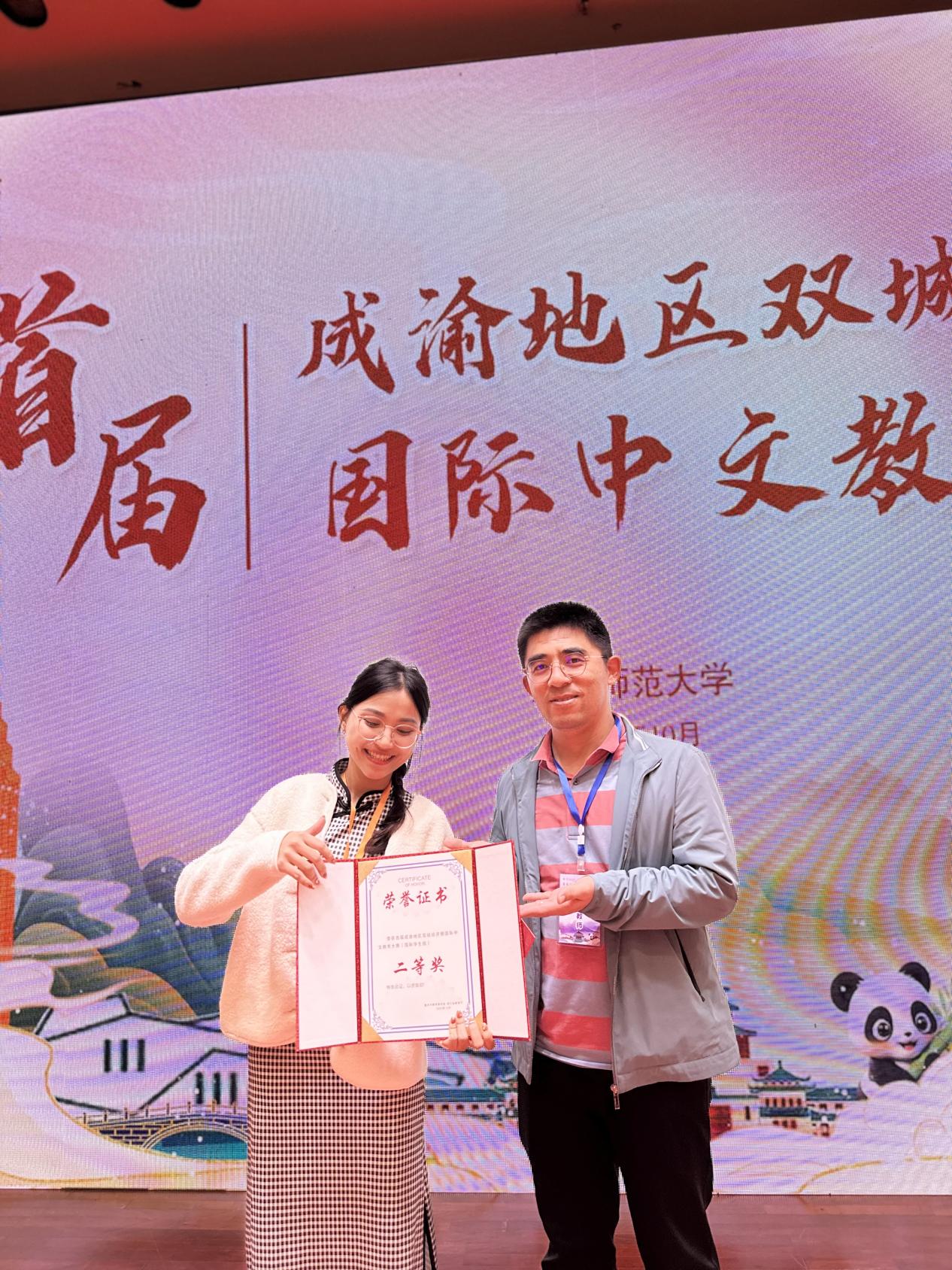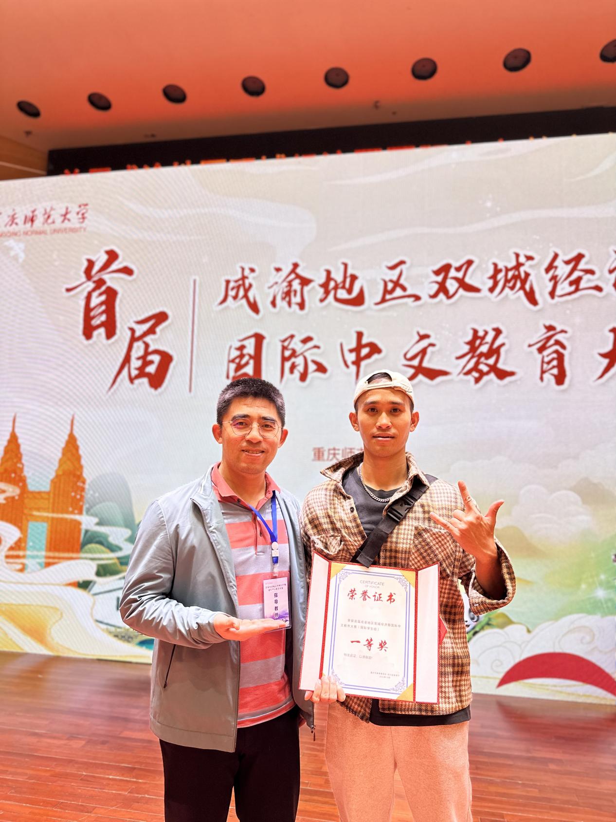 10月19日,首届成渝地区双城经济圈国际中文教育大赛决赛在重庆师范大学举行,本次赛事由重庆市教育委员会、四川省教育厅主办,重庆师范大学、四川师范大学承办。这是川渝两地第一次联合举办国际中文教育大赛,规格高、规模大、影响深,代表了两地国际中文教育赛事的最高水平。经过激烈角逐,学校国际学生刘文昊以总成绩第二名获得一等奖,阮氏兰香获得二等奖。