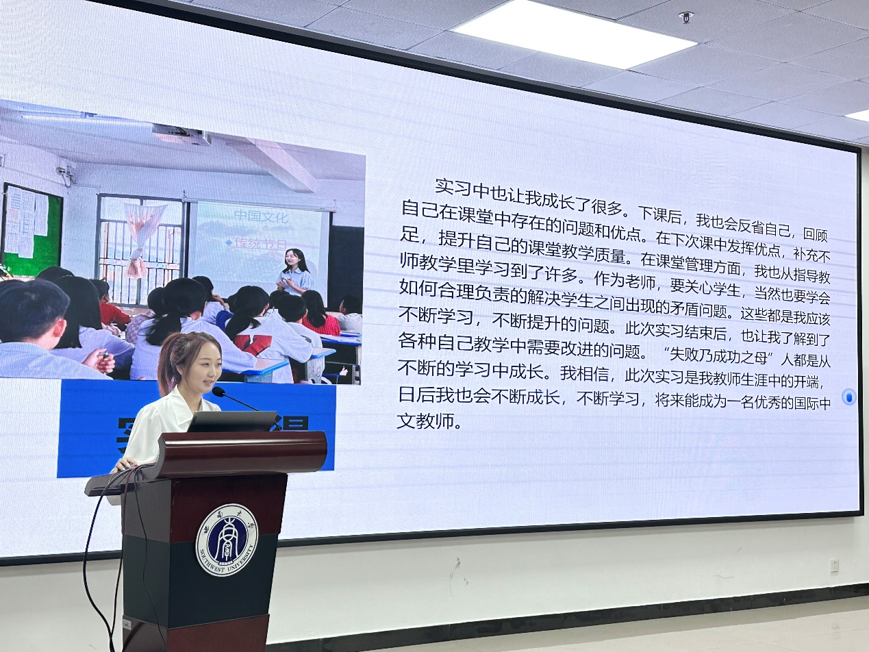 实习指导教师进行点评和寄语,充分肯定大家的实习表现。指出,“纸上得来终觉浅,绝知此事要躬行”,希望通过此次专业实习不断提升自己的综合素质,并鼓励学生继续努力,不断提高自己的汉语水平和职业技能。