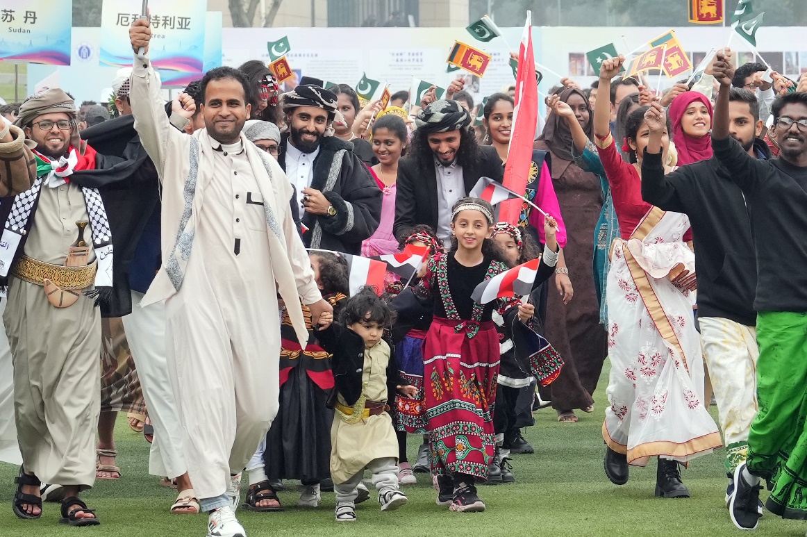 十载思路情,同聚五洲亲。12月10日下午,以“丝路筑梦 五洲同行”为主题的第十六届国际文化节在第四运动场拉开帷幕,来自100多个国家和地区的近千名国际学生参加本次国际文化盛典。中国教育国际交流协会,重庆市外办、市教委、市公安局出入境管理局、北碚区文旅委和区公安分局等部门相关领导,柬埔寨王国和缅甸联邦共和国驻重庆总领事馆总领事,巴基斯坦驻成都总领事馆代总领事,越南驻重庆工商部负责人,必赢776net副校长周光明以及相关单位负责人出席开幕式。