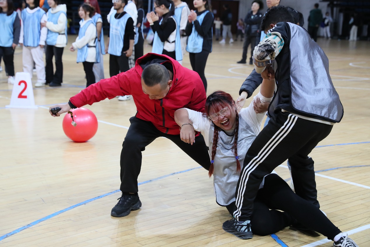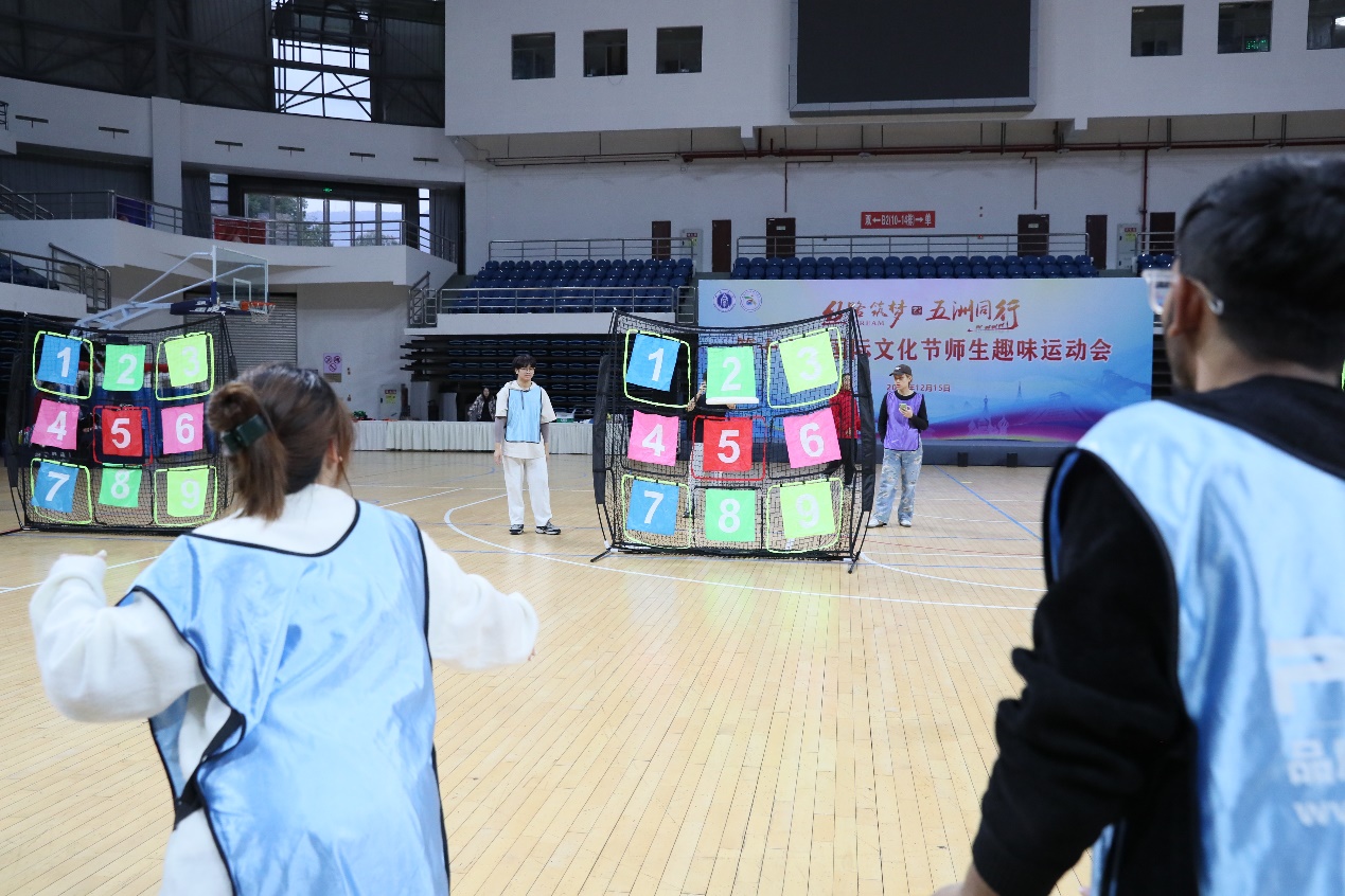 虽然已是气温骤降,寒风呼啸的12月,但位于学校中心体育馆内却充满着呐喊助威的加油声、此起彼伏的尖叫声、响彻云霄的欢呼声,第十六届国际文化节之中外师生趣味运动会正在这里进行。