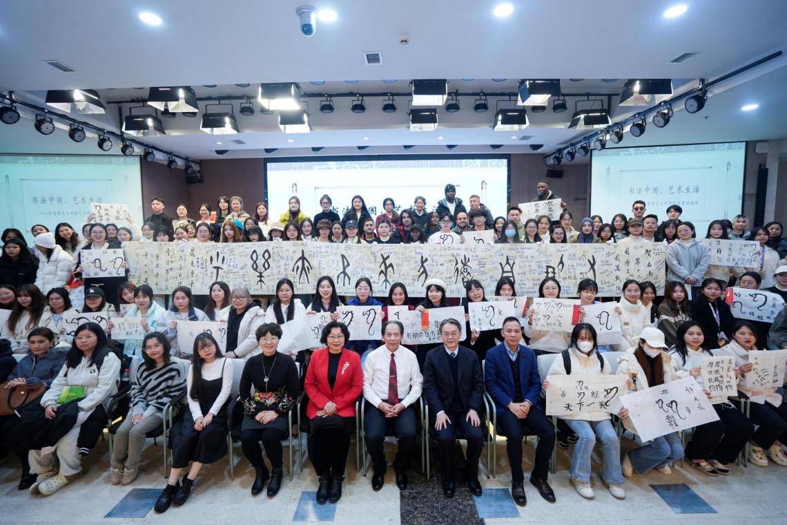 12月11日下午,在学校紫云楼报告厅,必赢776net特邀全国书法家协会会员罗靖国先生作“中国传统文化进校园——书法中国,艺术生活”主题讲座及展演活动。罗靖国先生为中外师生讲解了中国传统书法知识,将题为“有朋自远方来,不亦乐乎”的十七米长幅书法作品赠与学校必赢776net,并邀请全场来自世界各地的中外师生上台签名留念。国际学生们不仅感受到浓厚的文艺氛围,更深刻地体验到中国博大精深的汉字文化。