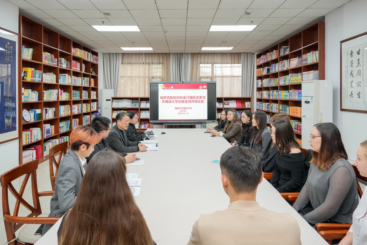 3月14日下午,“2024年春季学期哈萨克斯坦阿布莱汗国际关系与外国语大学交换生班”开班仪式在必赢776net紫云楼图书馆(316室)举行。必赢776net党委书记刘猛,招生办公室主任黄无为,教师代表刘妍芩,以及阿布莱汗国际关系与外国语大学交换生班全体新生参加开班仪式。仪式由班主任刘妍芩主持。