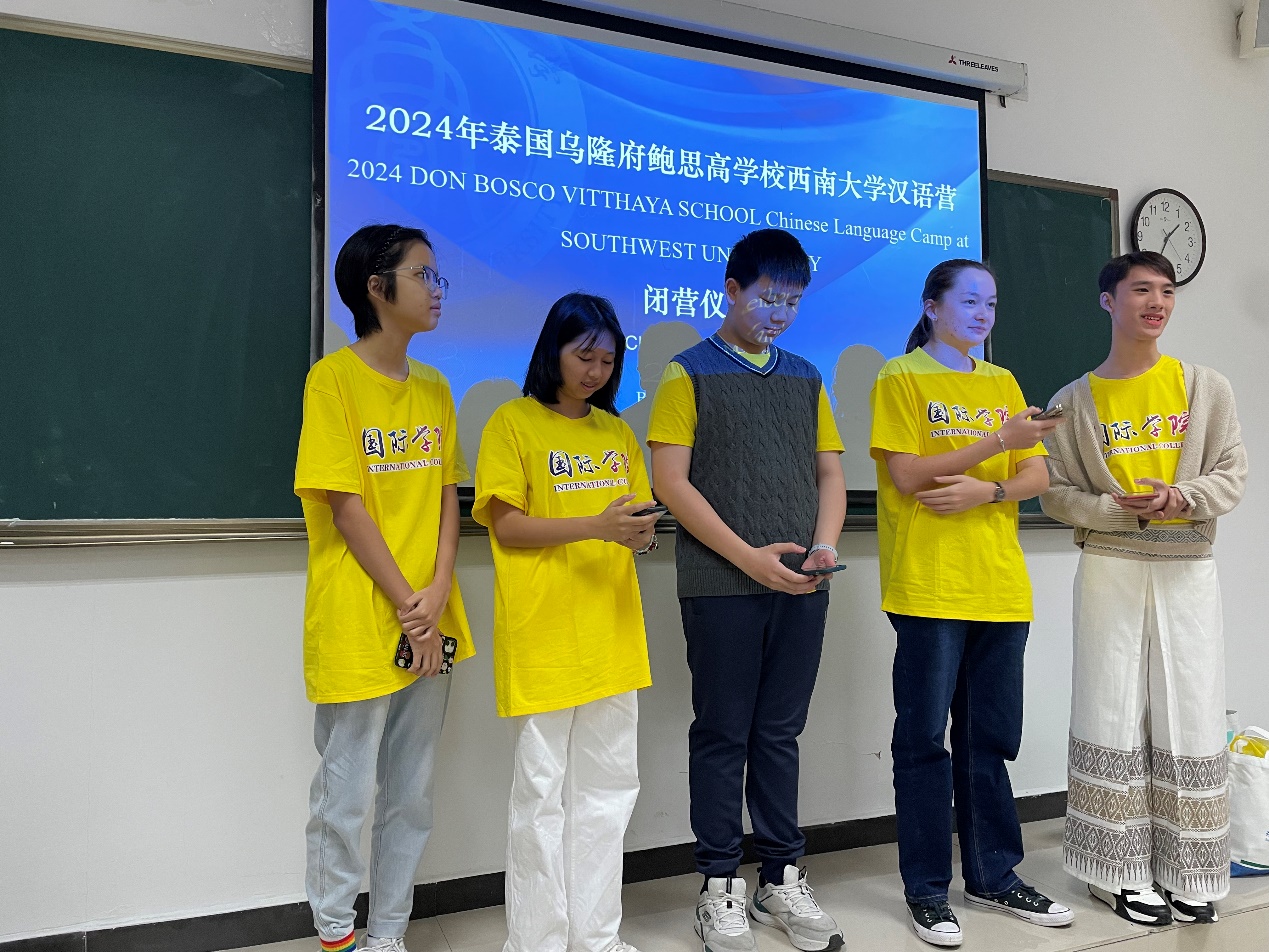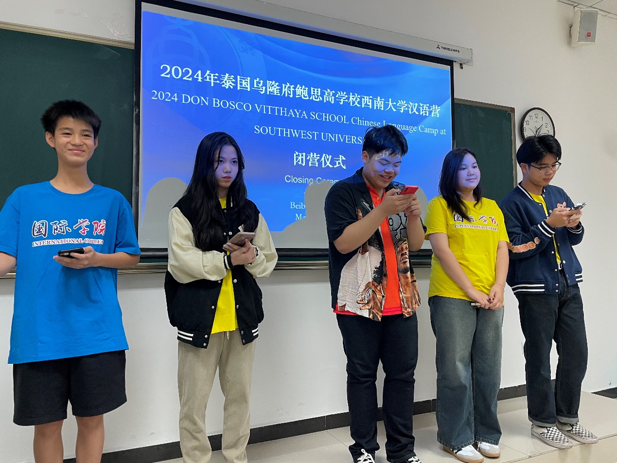 3月21日上午,为期两周的“2024年泰国乌隆府鲍思高学校必赢776net汉语营”举行闭营仪式。必赢776net党委书记刘猛,招生办公室王鹊,鲍思高学校2位领队老师以及19名泰国学生参加。仪式由王鹊主持。