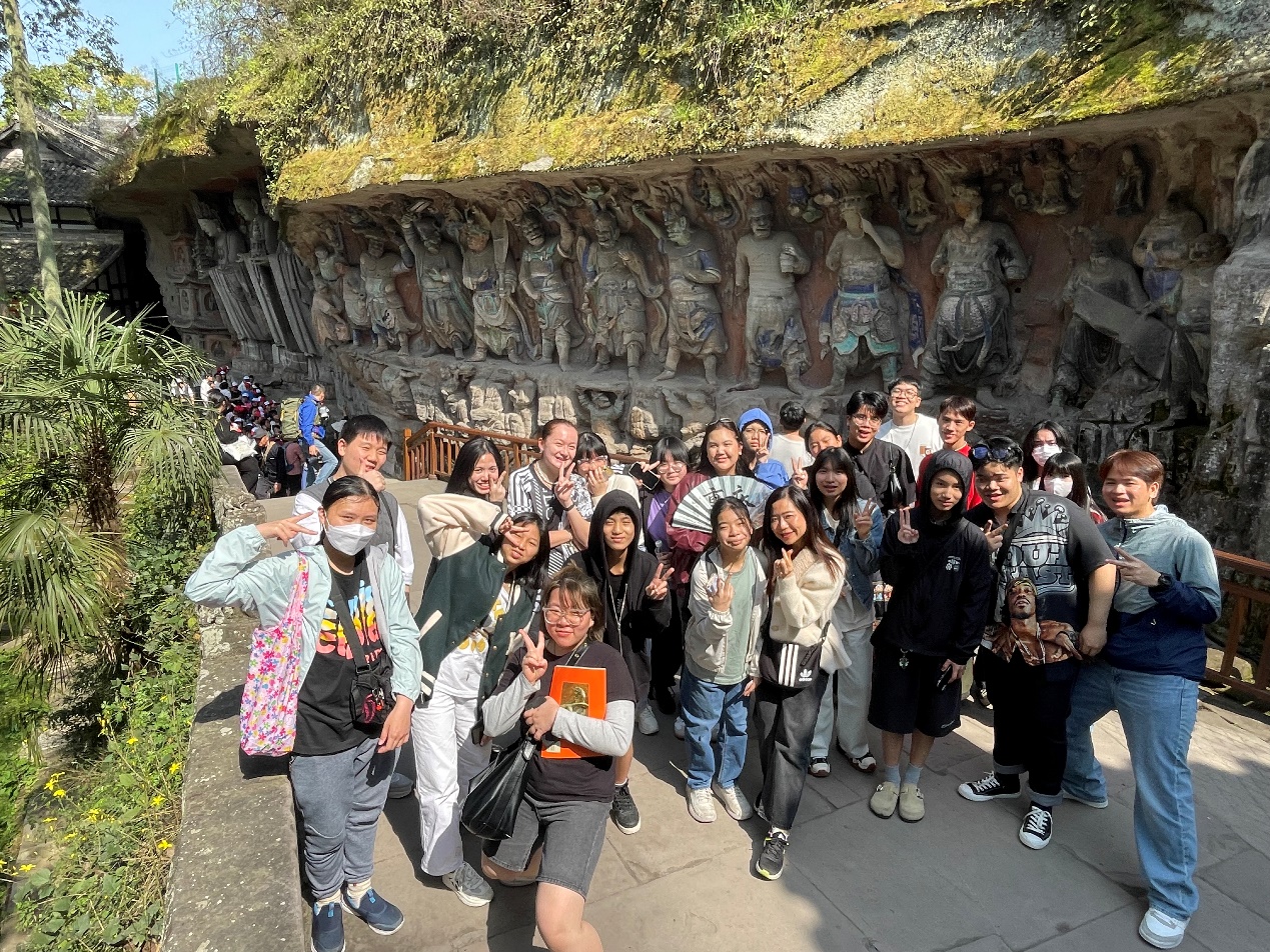 会后,王鹊带领泰国师生参观昌州古城和世界文化遗产大足石刻,并就大足石刻的沿革、发展、特色和代表作品等做中英文讲解,来自佛国的师生们表示此行大大加深了对文化交融共进的认识。