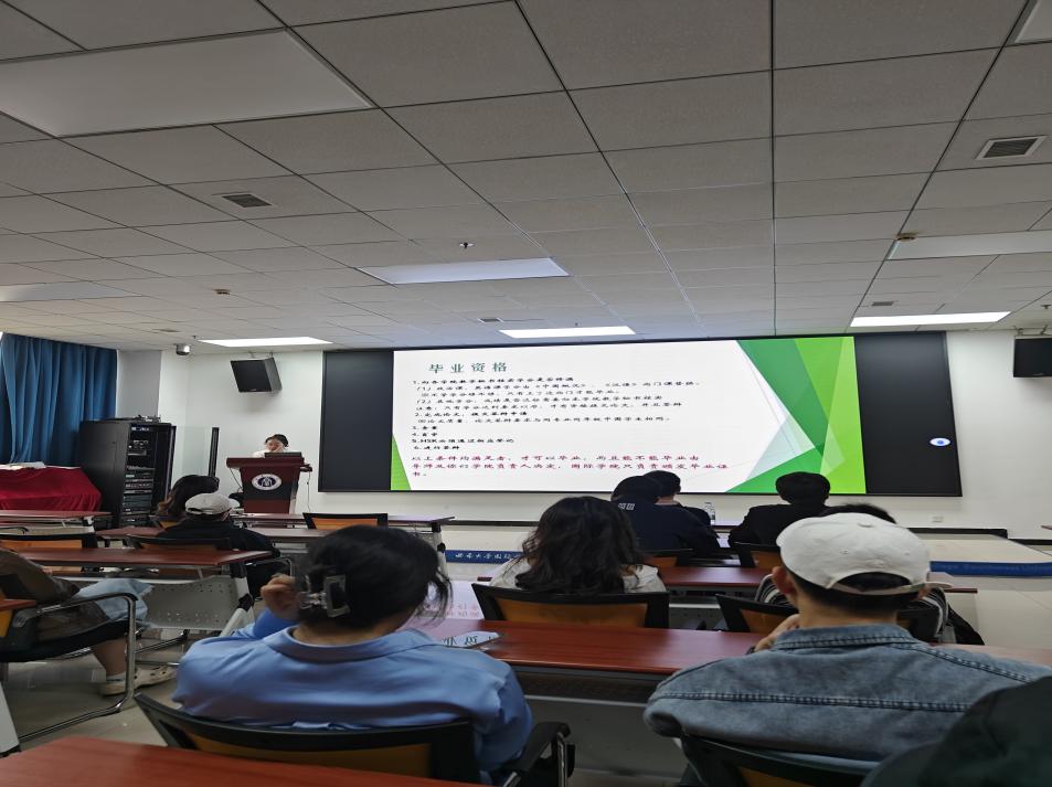 学院教学办公室刘燕妮从撰写论文、查重、盲审、论文答辩等多个方面进行详细介绍。宣讲结束后,刘燕妮对学生提出的问题进行了详细的解答,并把宣讲内容即时发送至2024届毕业生微信群。通过宣讲,与会同学较为全面地了解了毕业时应注意的相关事宜,为能够顺利毕业奠定了基础。
