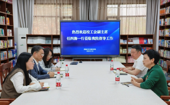 4月12日上午,学校工会副主席任四海携同财务李小琴来学院开展调研,学院党委书记刘猛,工会主席杨凌霄、办公室主任兼工会福利委员马若晨参加调研座谈。