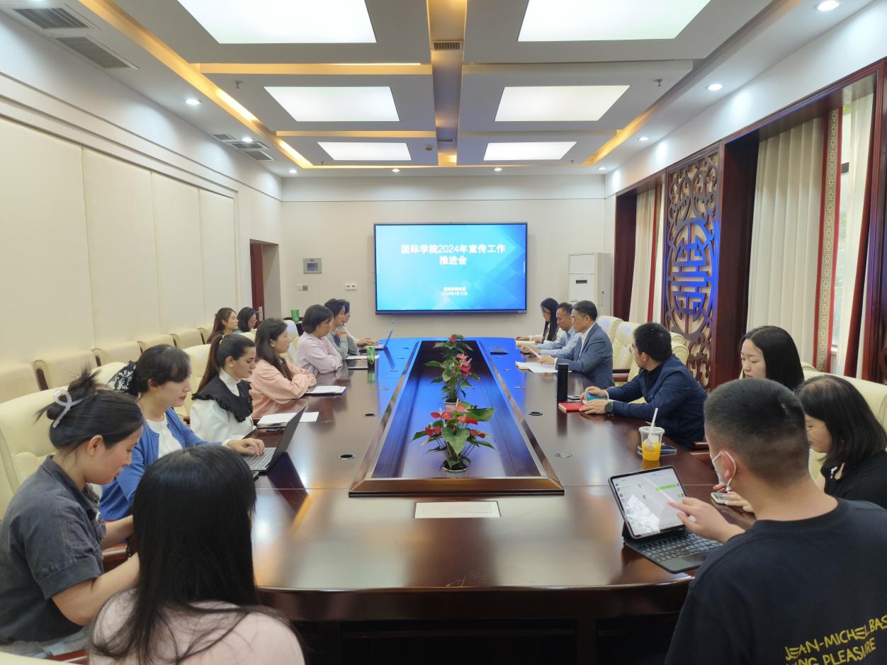 为进一步扩大来华留学工作的品牌影响力,提升新闻宣传工作的整体水平,必赢776net于2024年4月12日下午,在紫云楼签约室召开学院2024年宣传工作推进会。学院党委委员、科室/系负责人、党支部书记、学院融媒体中心中外学生干部参加会议。会议由学院党委副书记耿军主持。