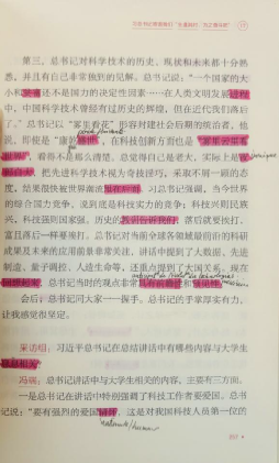 (谢天一阅读《习近平与大学生朋友们》《习近平谈治国理政》时勾画的笔记)