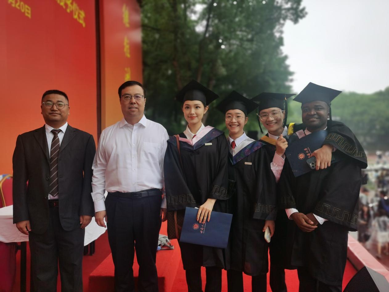 典礼结束后,谢天一表示第一次在3000多人面前演讲,并且是用汉语演讲,一开始还是很紧张的,好在后来调整好了状态。他非常感谢学校和学院选拔他代表2024届本科毕业留学生发言。在准备发言稿的过程中,他一再打磨,为的就是将自己的真实经历、真实想法、真实情感以最佳形式传达给听众。他真切地表示自己定会如发言中所提及的那样,努力成为中刚文化交流的使者,世界和平的使者,为实现人类命运共同体而努力!