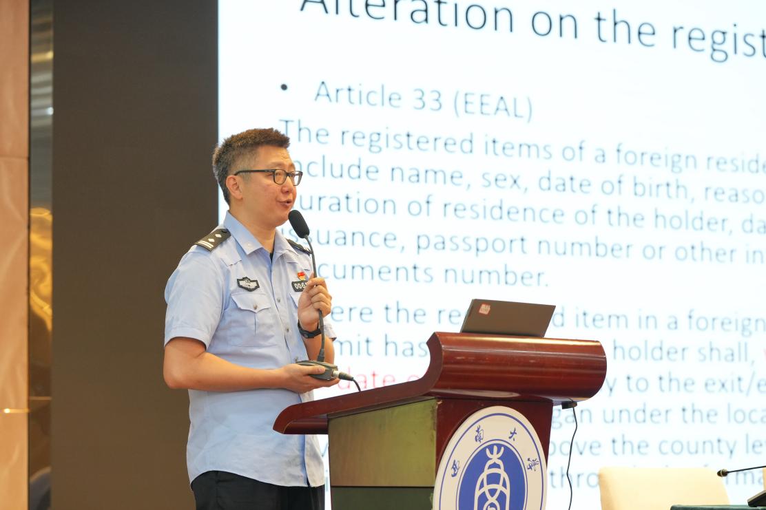 2024年9月20日上午,重庆市公安局出入境管理总队境外人员管理支队李智浩支队长 一行受邀来到学校,为全体2024级国际学生开展法律法规宣讲,并进行现场签证面签。