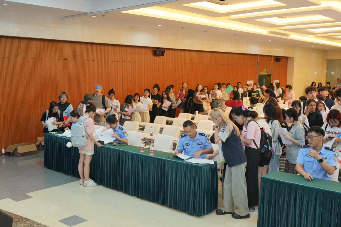 随后,警官们为全体新生提供现场签证面签服务,留学生们有序排队提交签证材料,最大化地保障签证工作的高效完成。