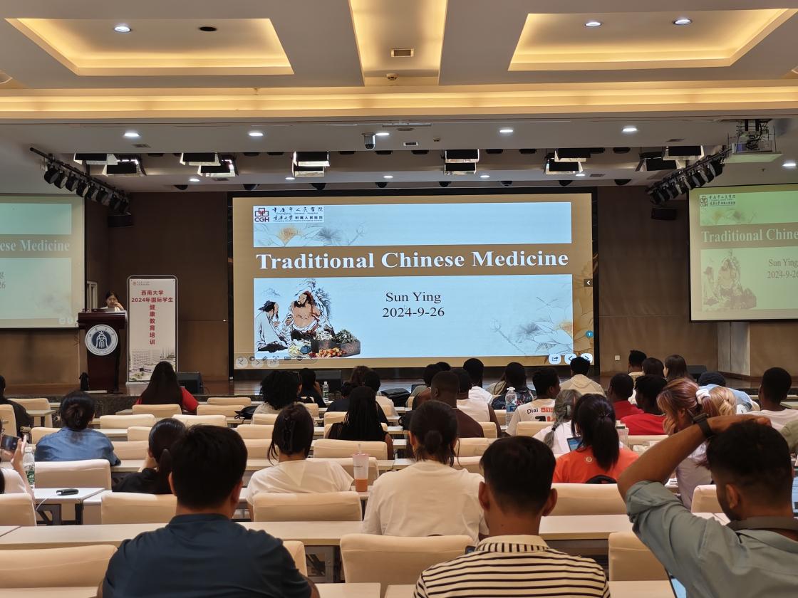 2024年9月26日下午,以“中医文化深度体验”为主题的留学生健康教育培训活动在必赢776net紫云楼报告厅举行,活动分为讲座与体验两个环节。讲座特邀重庆市人民医院(重庆大学附属人民医院)资深中医医师孙英作为主讲嘉宾,为来自世界各地的留学生带来了一场别开生面的讲座,让留学生在理论、实践和体验中感知中医药文化。培训会由仇淼主持。