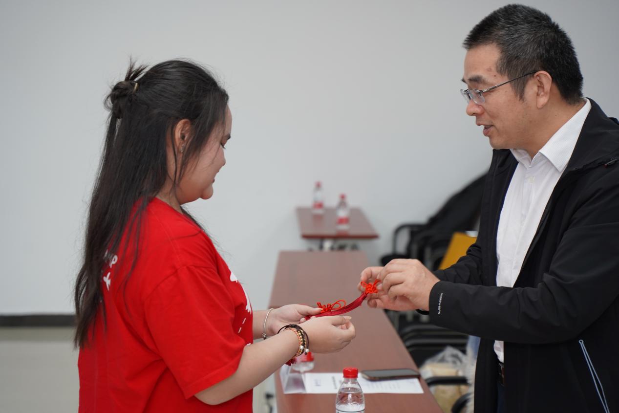 张璐硬、李慧贞同学作为学生代表用中文进行发言,她们畅谈着自己的学习感想和收获,以及对老师和志愿者的感谢,并将制作的中国结赠送给各位老师。