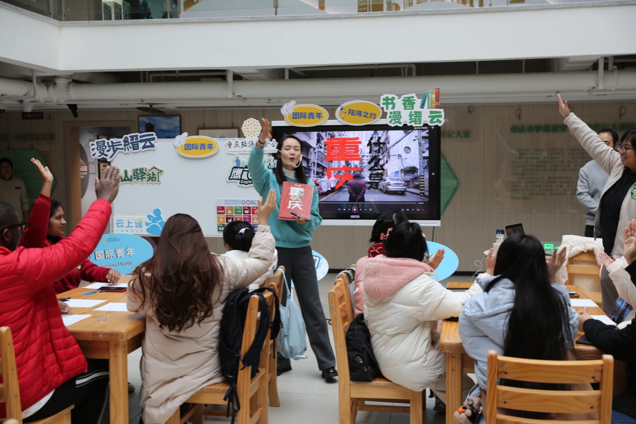 活动在缙云山山脚下拉开帷幕,来自学校5个不同国家的16名国际学生首先参加了 “重庆推荐官” 志愿服务培训会。在培训会上,他们深情朗读了《缙云山之歌》,在悠扬的歌声与歌词中感受缙云山的独特韵味。