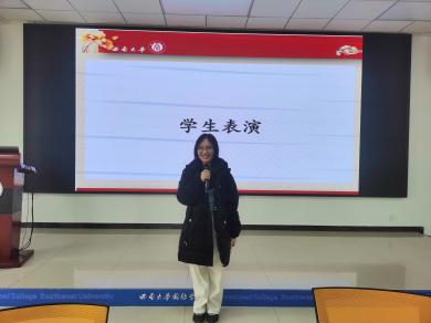 学生表演环节将总结会推向了高潮。来自尼日利亚的倪思危同学以一首《刚好遇见你》打动了在场的每一个人,他的歌声温柔而富有感染力;越南的阮氏红绒同学则带来了《命运》和《天下》两首歌曲,她的嗓音清澈透亮,将歌曲中的情感表达得淋漓尽致;泰国的郑俪雅同学演唱的《这世界有那么多人》,更是触动了每一个人的心弦。其他同学也积极踊跃地表演了歌曲,现场气氛热烈而温馨。