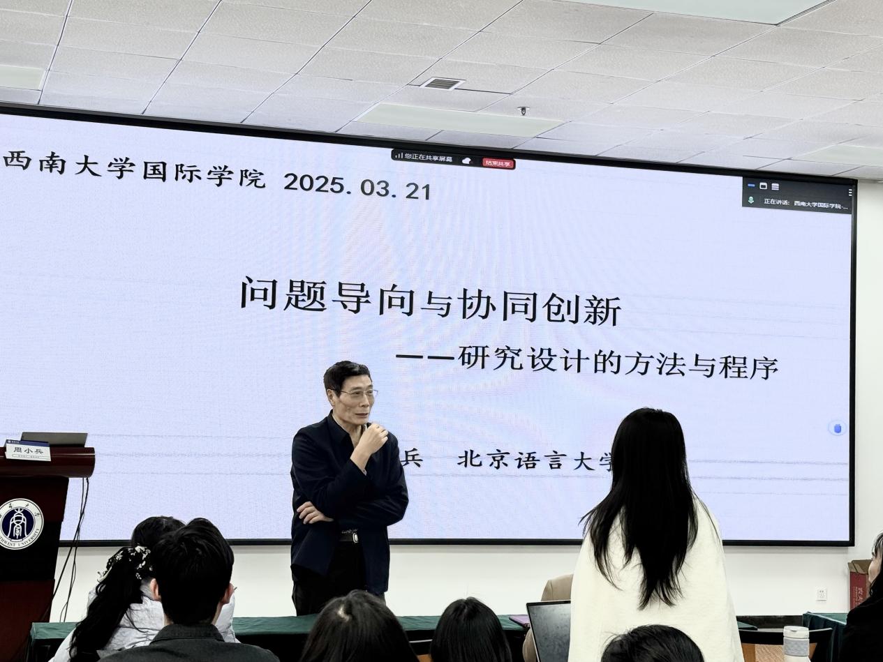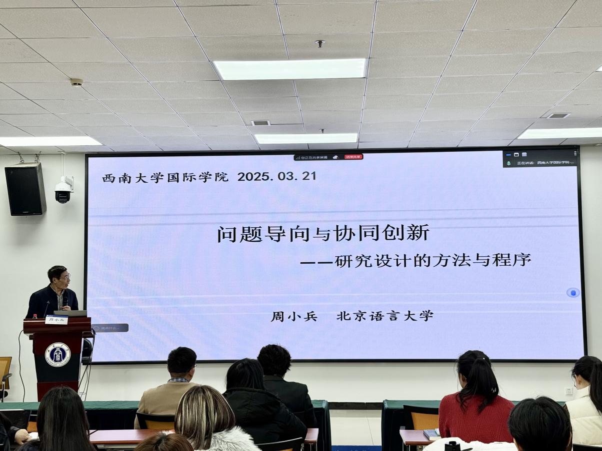 2025年3月21日,北京语言大学周小兵教授应邀来我院,以“问题导向与协同创新”为主题,为我院师生带来一场内容丰富、视角前沿的学术讲座。本次讲座聚焦国际中文教育研究中的实际问题与创新路径,结合理论解析与生动案例,为师生提供了宝贵的研究启示与实践指导。