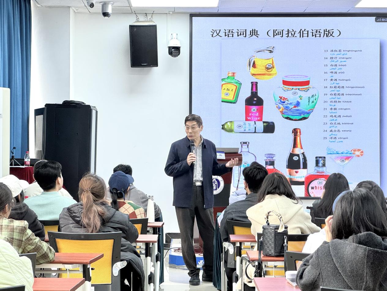 讲座伊始,周小兵教授以留学生在汉语学习中常见的语言偏误为切入点,通过对比汉语与阿拉伯语的语言差异,揭示了跨语言学习中的难点。例如,针对“我学习汉语在中国”“澳门是一个很发展的城市”等典型偏误,周教授指出,此类问题不仅源于母语负迁移,更与教材编写、词典释义精准度密切相关。他强调,研究者需从教学实践中提炼真实问题,进而探索解决方案。