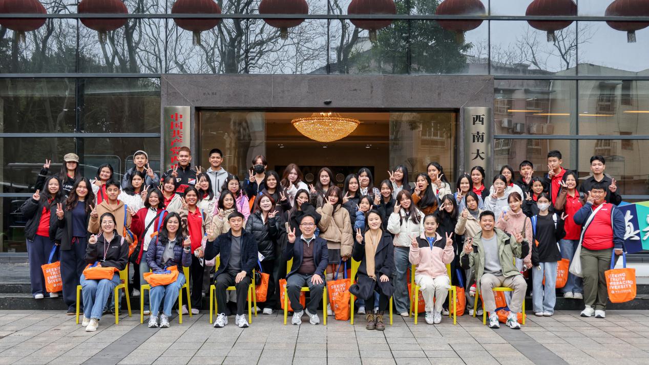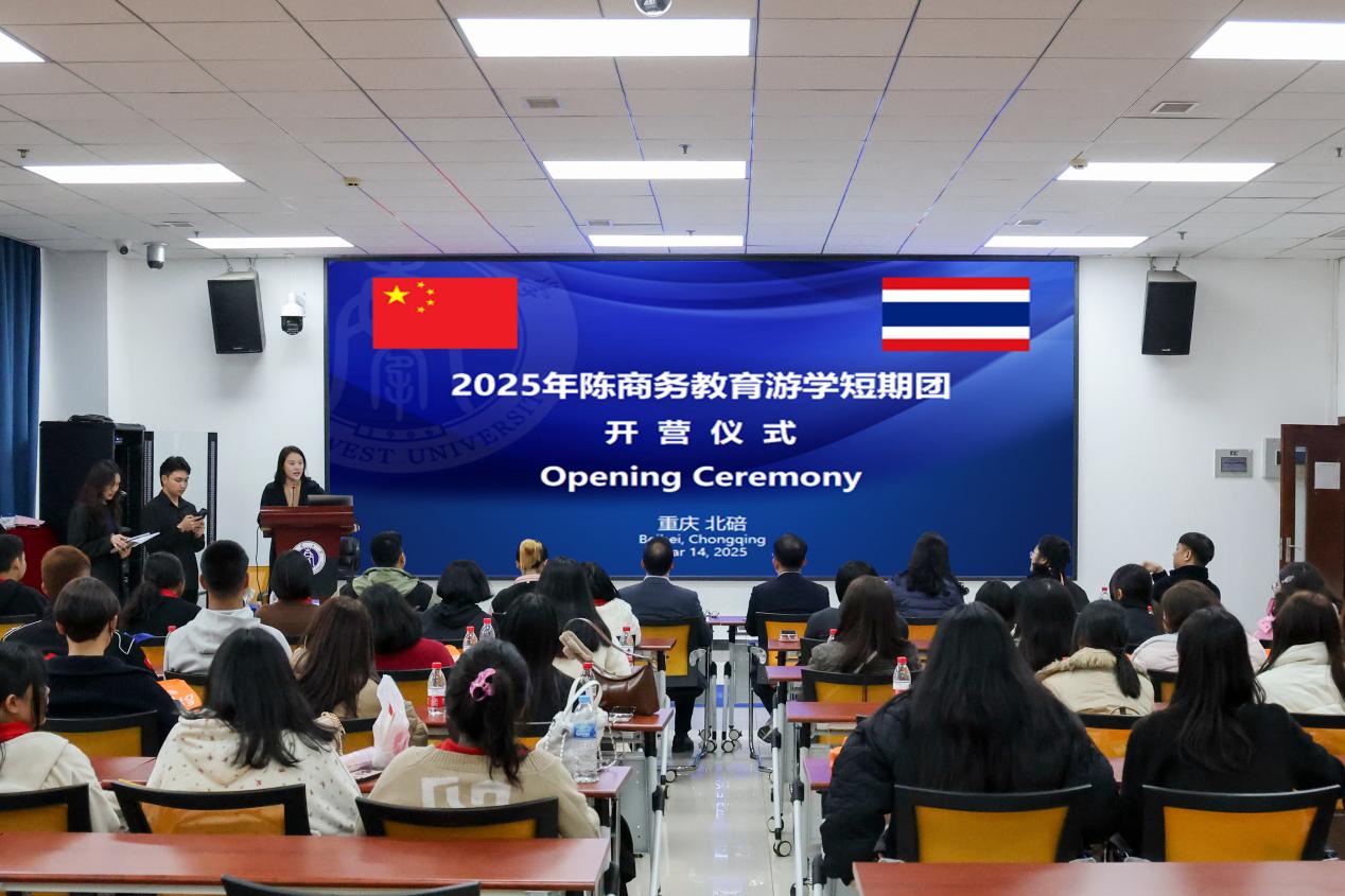 3月14日下午,“2025陈商务教育游学短期团”开营仪式在必赢776net317教室举行。必赢776net党委副书记耿军,泰国暖武里府女子学校校长查猜·坦空布里、普吉皇太后中学汉语教师林美莲及43名泰国学生参加开营仪式。仪式由刘嬛主持。