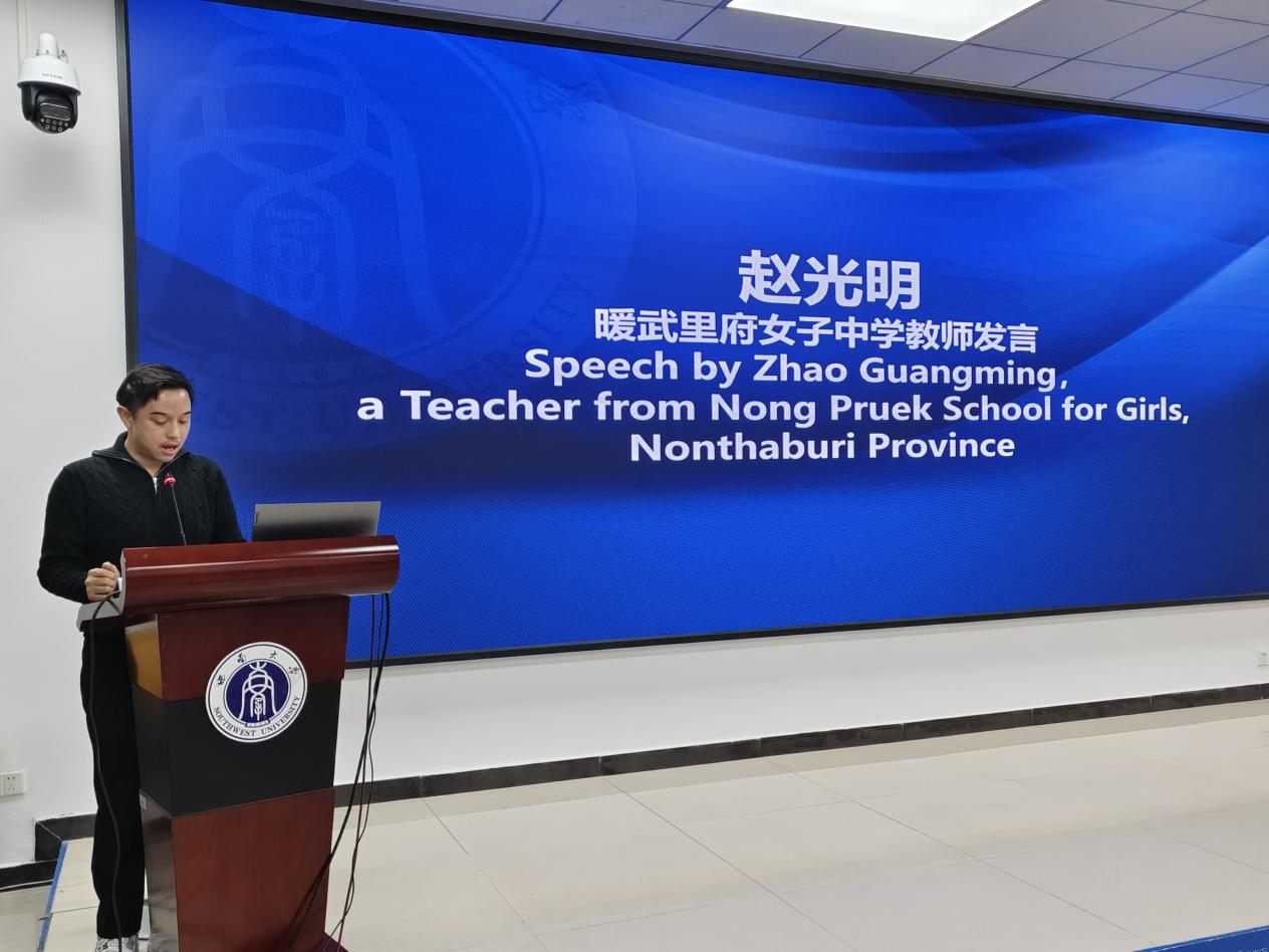 泰国暖武里府女子中学的赵光明教师分享了学生们在学习和生活中的点滴趣事,称赞中国的教育资源丰富,必赢776net的课程安排合理且有趣,让泰国学生深入体验到了中国文化和学术的魅力。