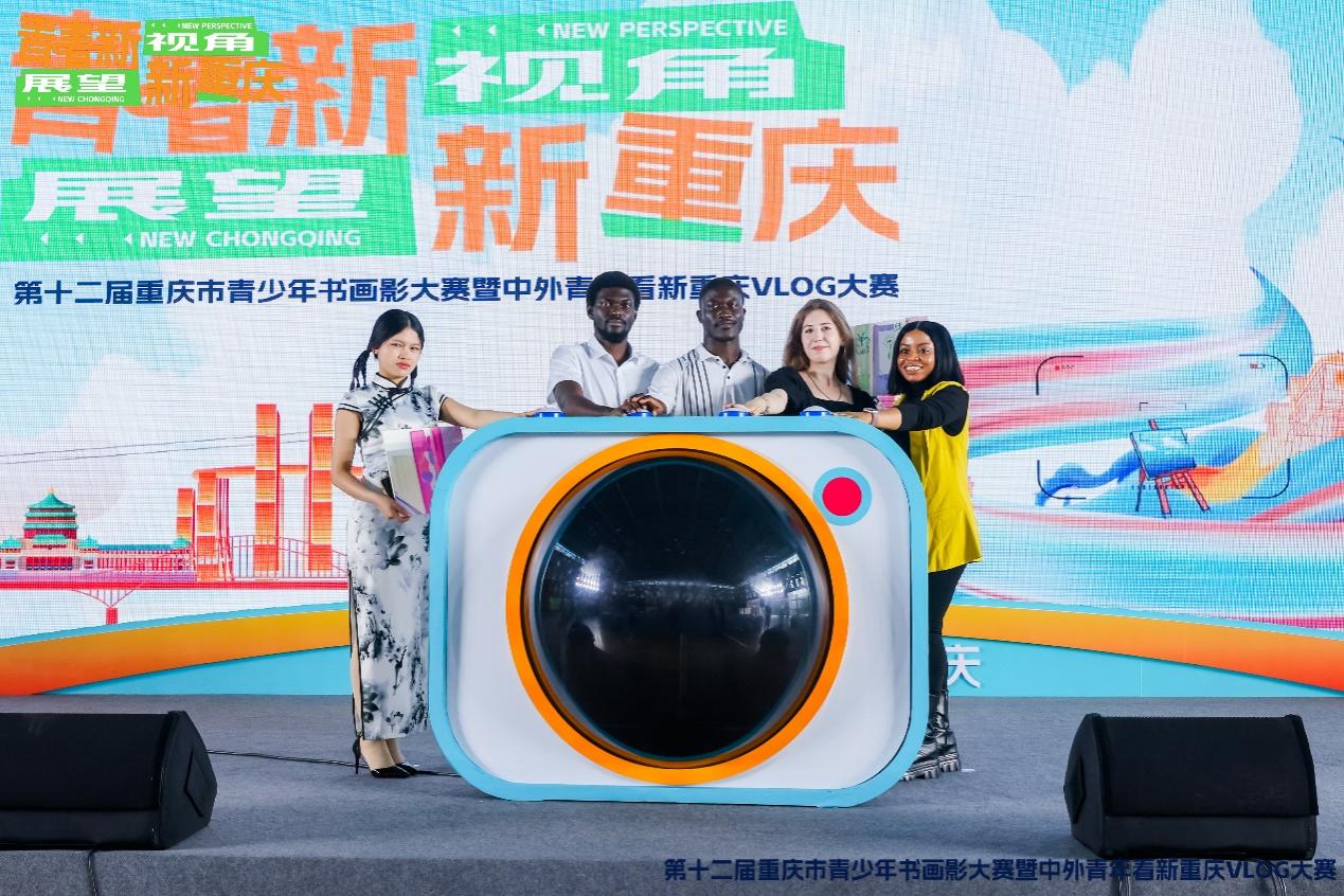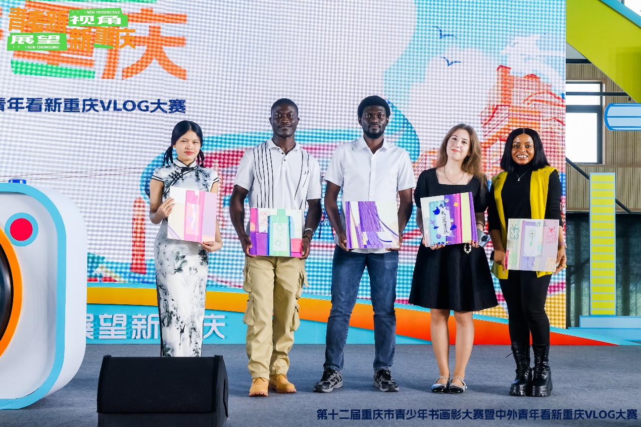 2025年5月14日下午,学校5位来华留学生受邀参加了第十二届重庆市青少年书画影大赛暨中外青年看新重庆VLOG大赛启动活动。在这场以“青年新视角 展望新重庆”为主题的活动中,留学生们参与了“《快乐'新'家》中文脱口秀”和“青少年百人共创新重庆主题画”两个环节,充分展现了国际青年的青春风采。