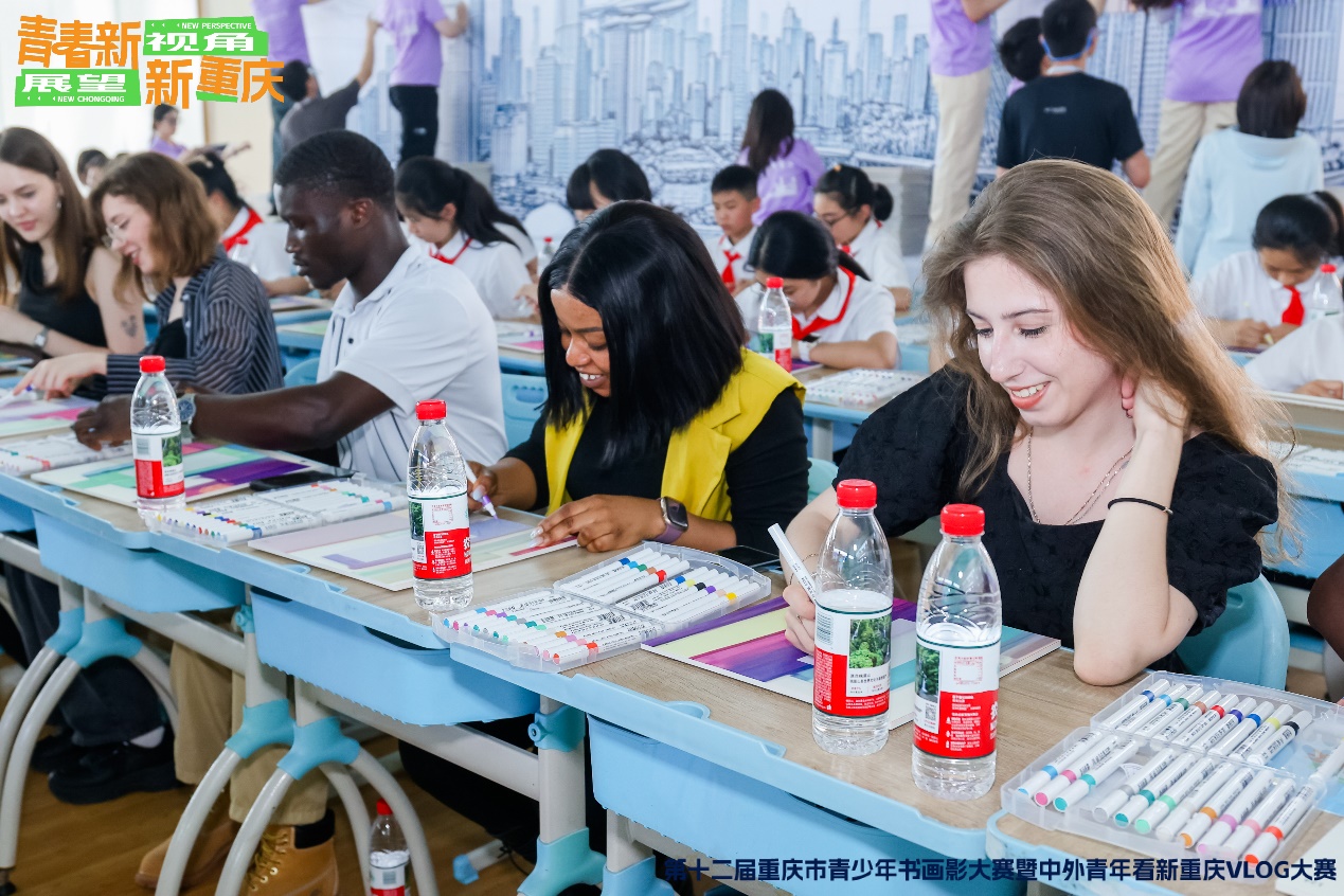 随后,在“青少年百人共创新重庆主题画”环节中,留学生们与其他青少年代表们一起,用画笔描绘出他们心中的新重庆。他们将自己在重庆的所见所闻、所思所想融入画作之中,展现出了独特的国际视角和艺术创造力。