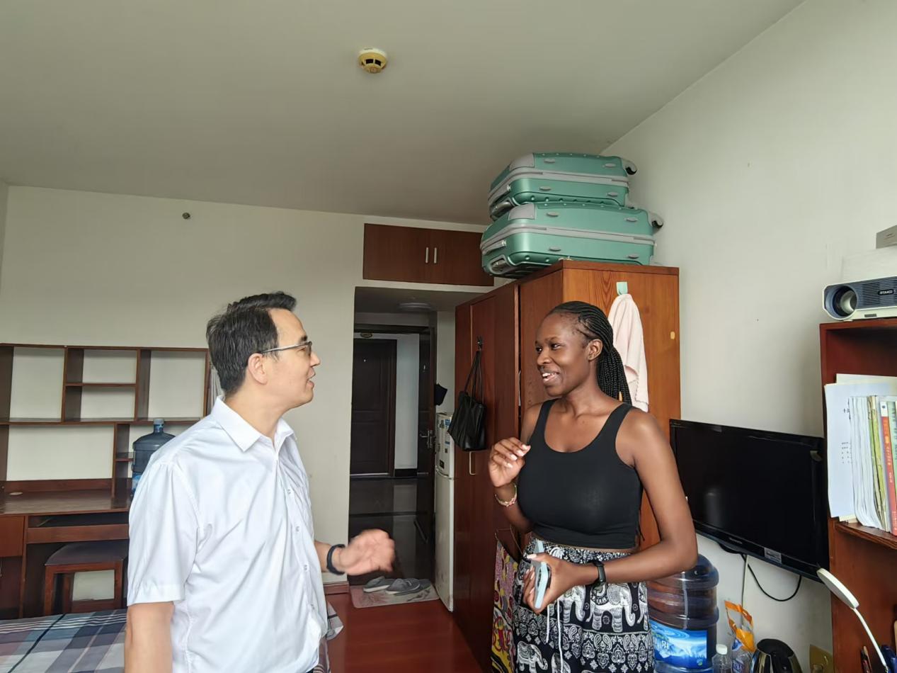 临近期末,为确保留校留学生安全,切实传达学院的关怀与问候,2025年7月3日,必赢776net的院领导和辅导员兵分多路,分别看望住在紫云楼、竹园留学生宿舍以及校外住宿的留校留学生。