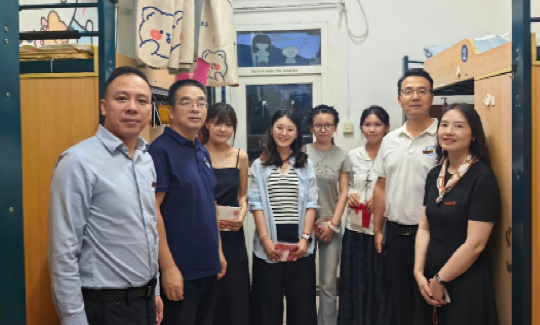 8月29日晚,学院党委书记张袁松、院长于泽元、党委副书记耿军、副院长胡琳以及辅导员杨凌霄一同深入2025级国际中文教育硕士研究生新生宿舍,开展走访慰问活动,为新同学们送上学院的温暖与关怀。